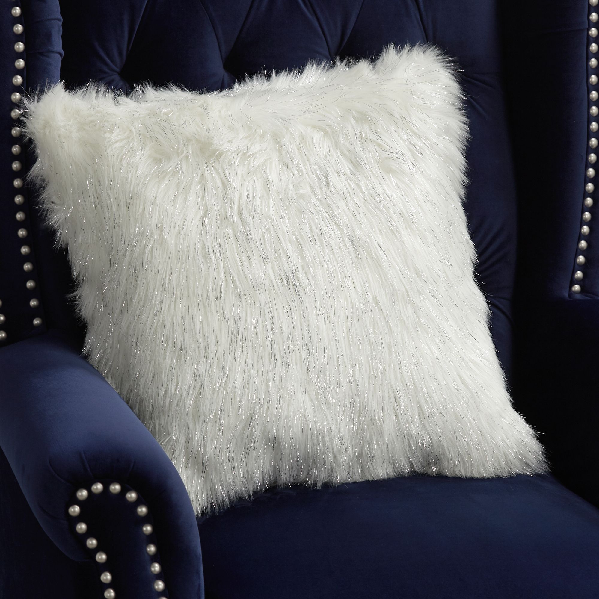 Glamour Fox Ivory and Silver Specks 18"W Faux Fur Pillow