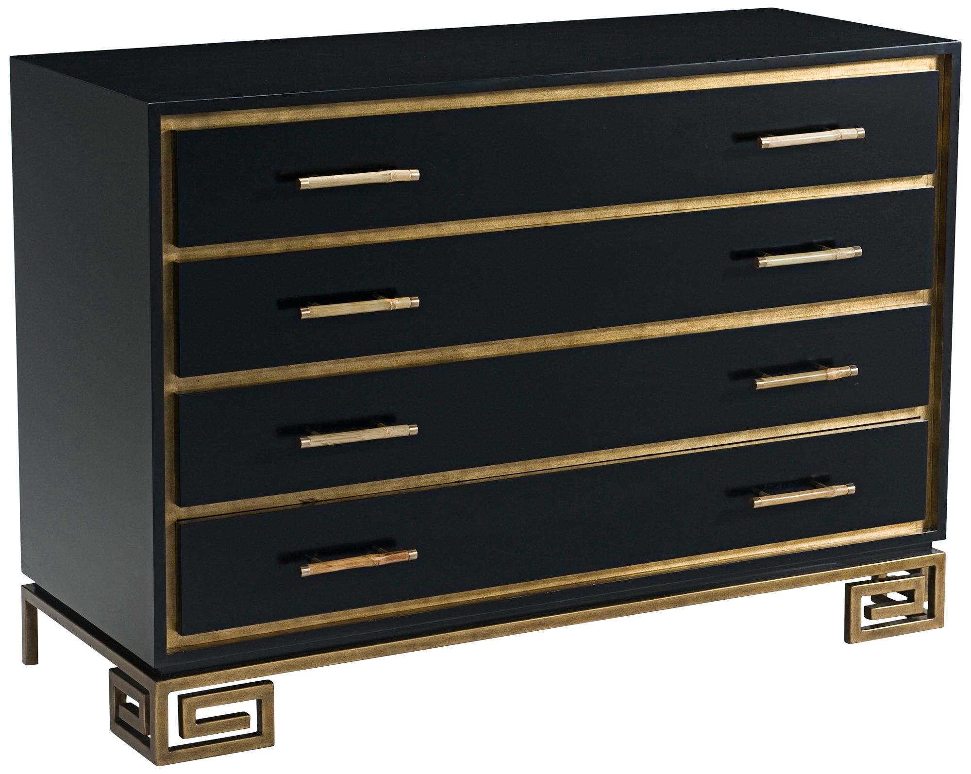 Fascinate 52" Wide Black and Gold Gilt 4-Drawer Wood Chest
