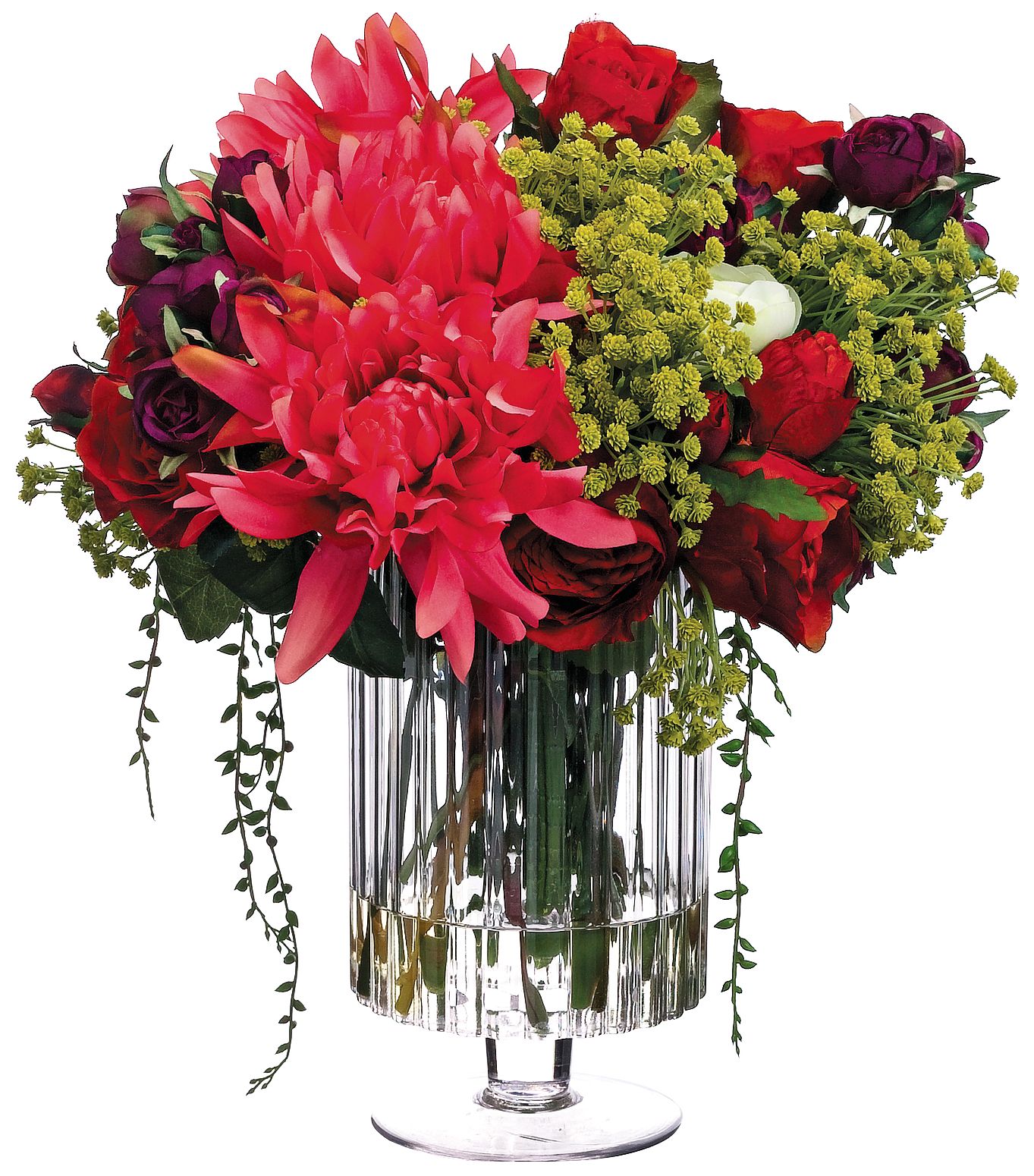 Dahlia and Red Rose 16" Wide Faux Flowers in Glass Vase