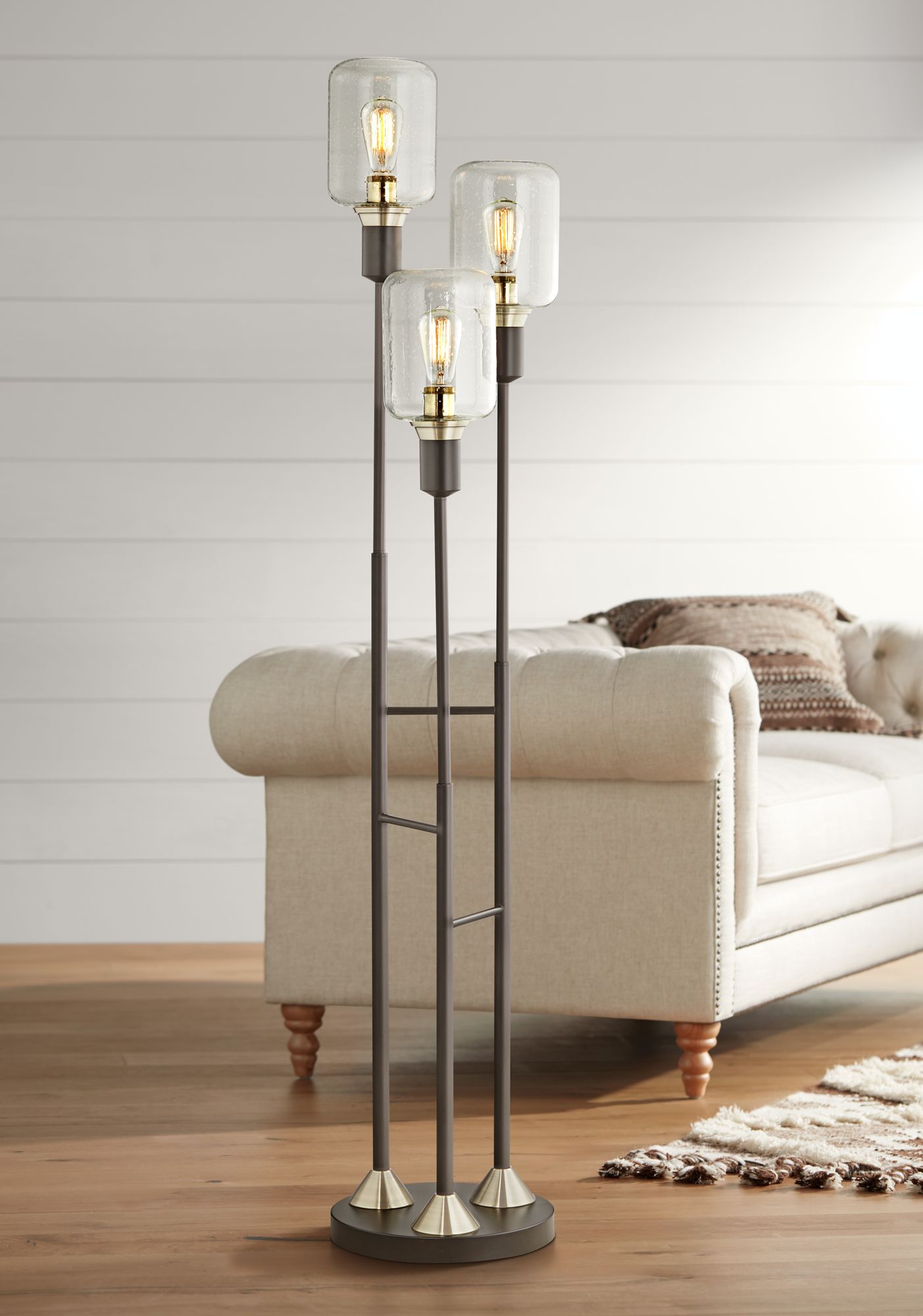 Pacific Coast Menlo 70" Black-Bronze 3-Light Seeded Glass Floor Lamp