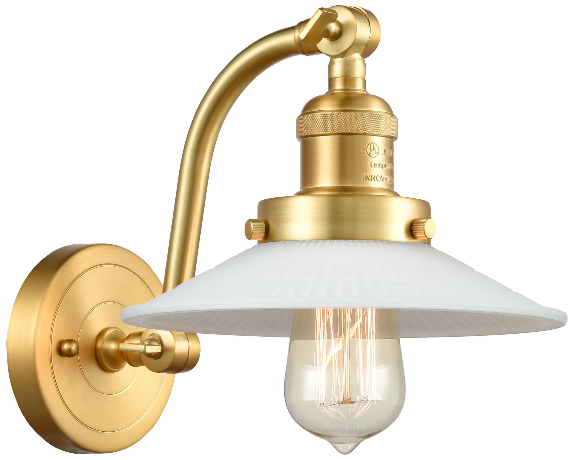 Halophane 11.5" High Satin Gold Sconce w/ Matte White Halophane Shade
