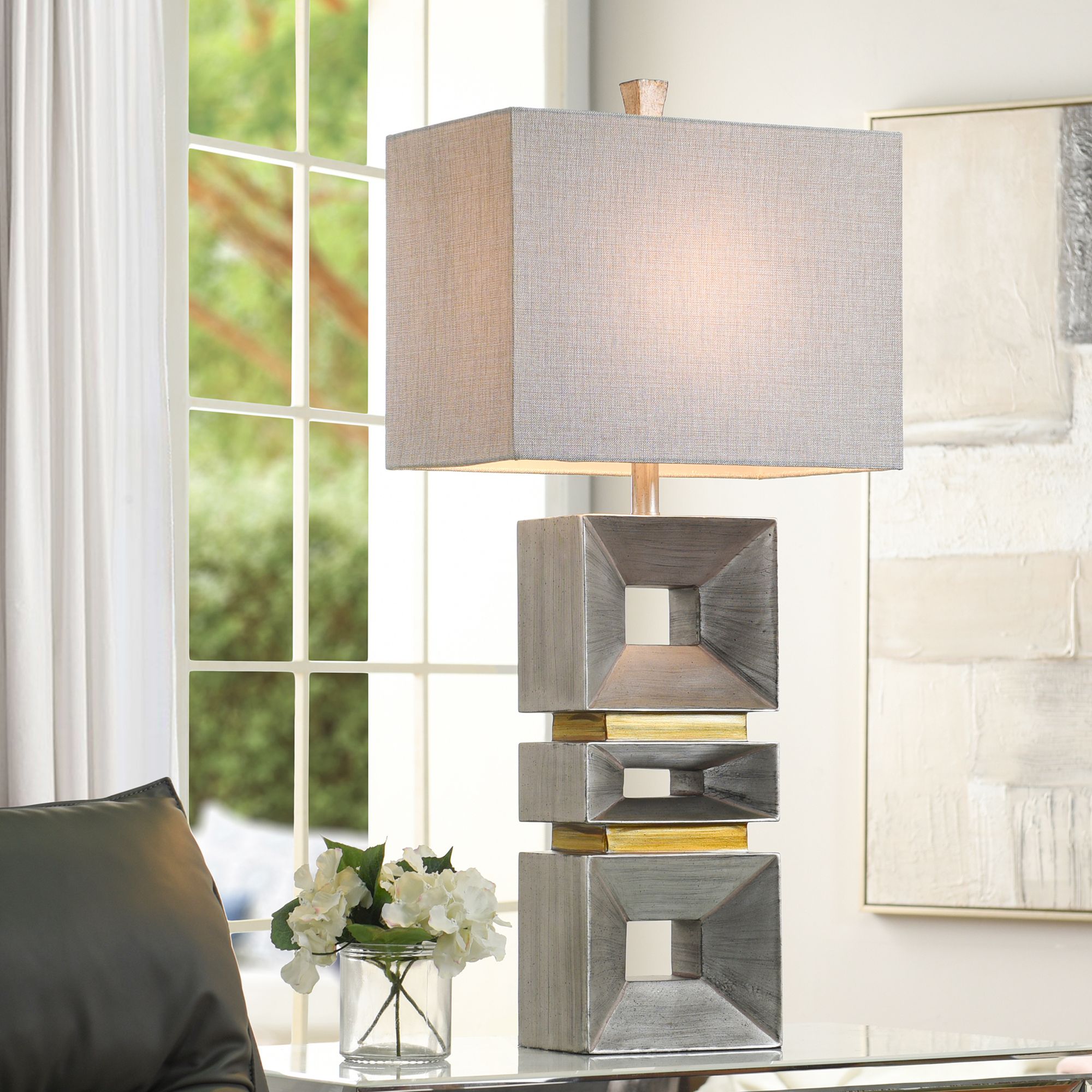 Stylecraft Palladium 35" High Gray Shade Modern Silver Table Lamp