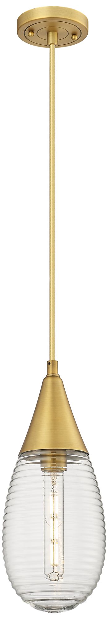 Malone 6" Wide Cord Hung Brushed Brass Pendant With Striped Clear Shad