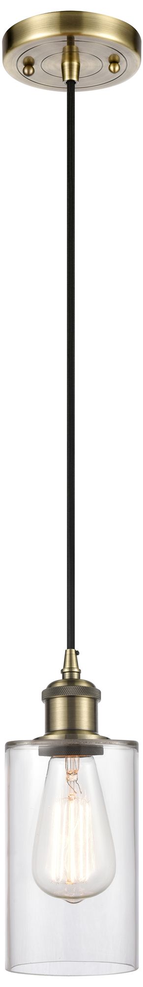 Clymer 4" Antique Brass Cord Hung Mini Pendant w/ Clear Shade