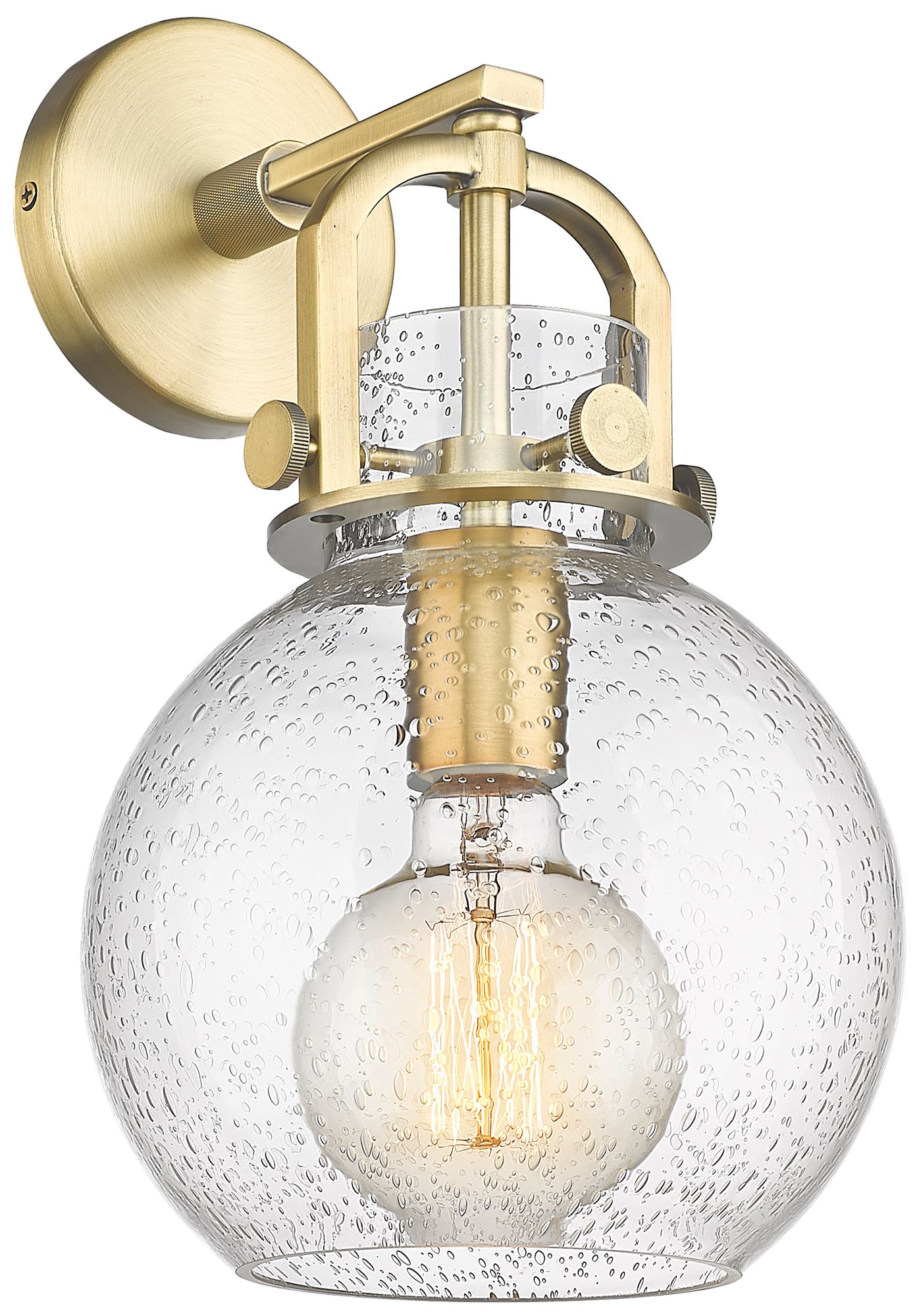 Newton Sphere 14" High Brushed Brass Sconce With Seedy Shade