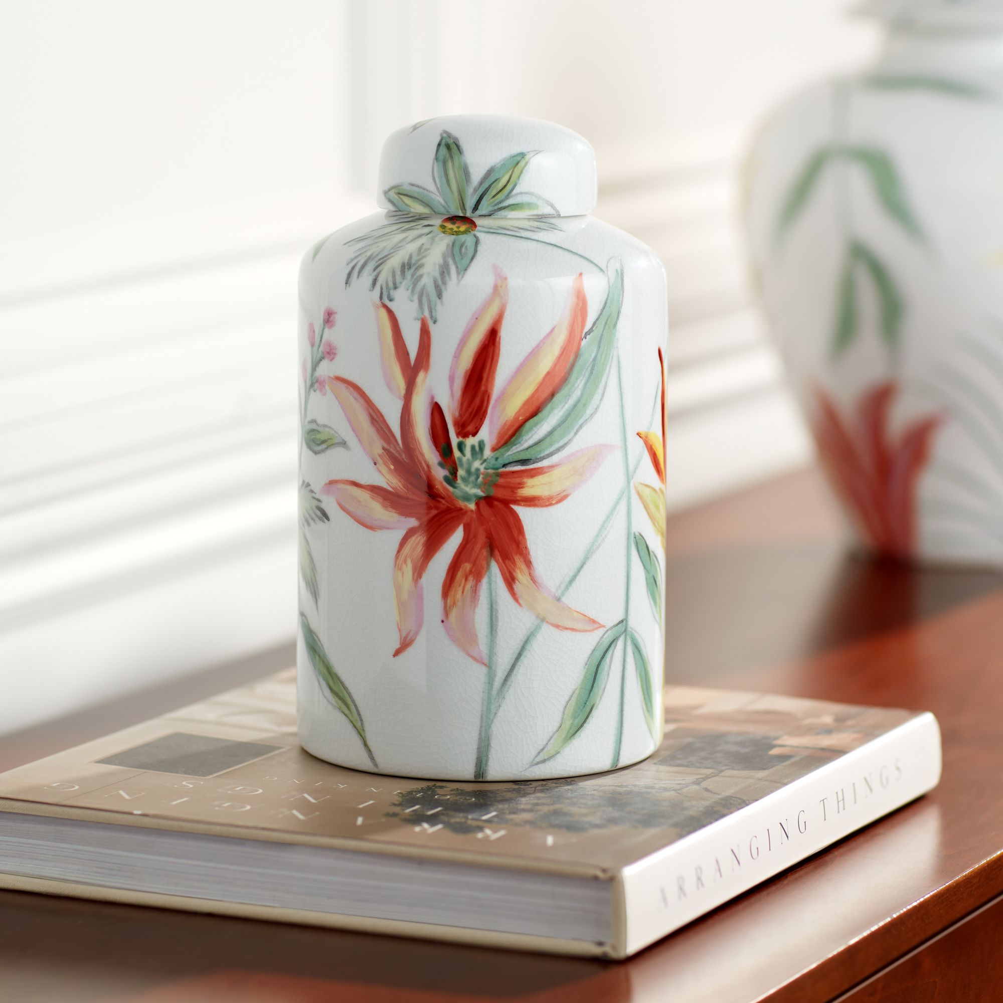 Sensei 8 1/2"H Red and White Ceramic Decorative Jar with Lid