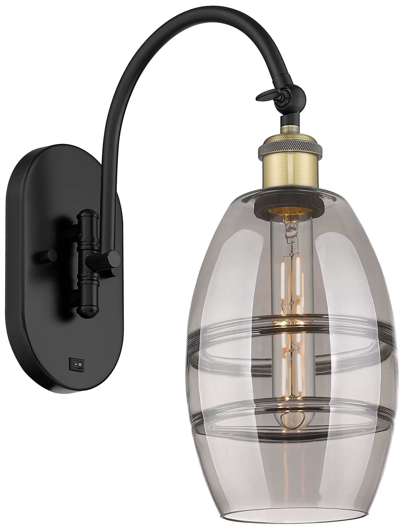 Ballston Vaz 11.63"H Black Brass Adjustable Sconce w/ Smoke Shade