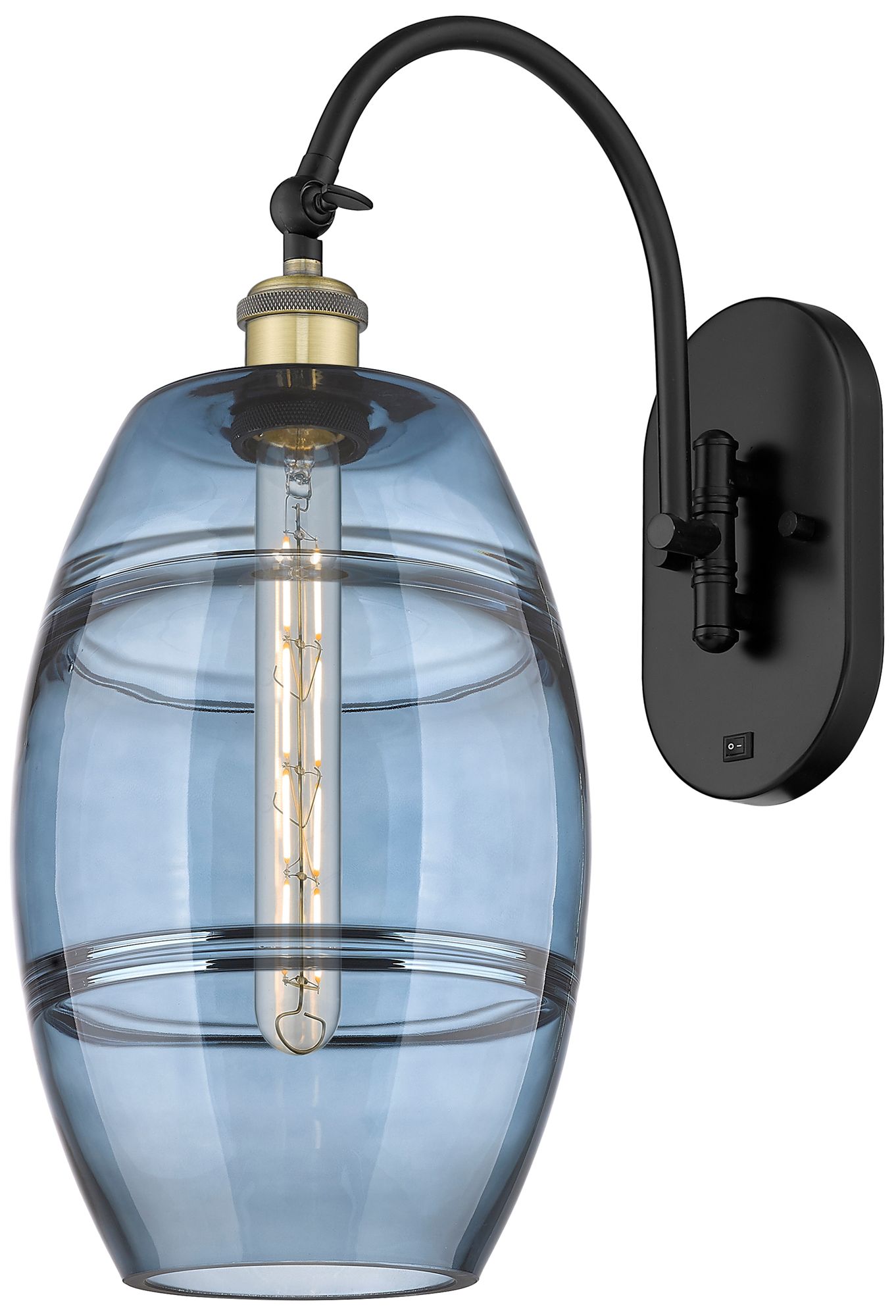 Ballston Vaz 13.38"H Black Brass Adjustable Sconce w/ Blue Shade