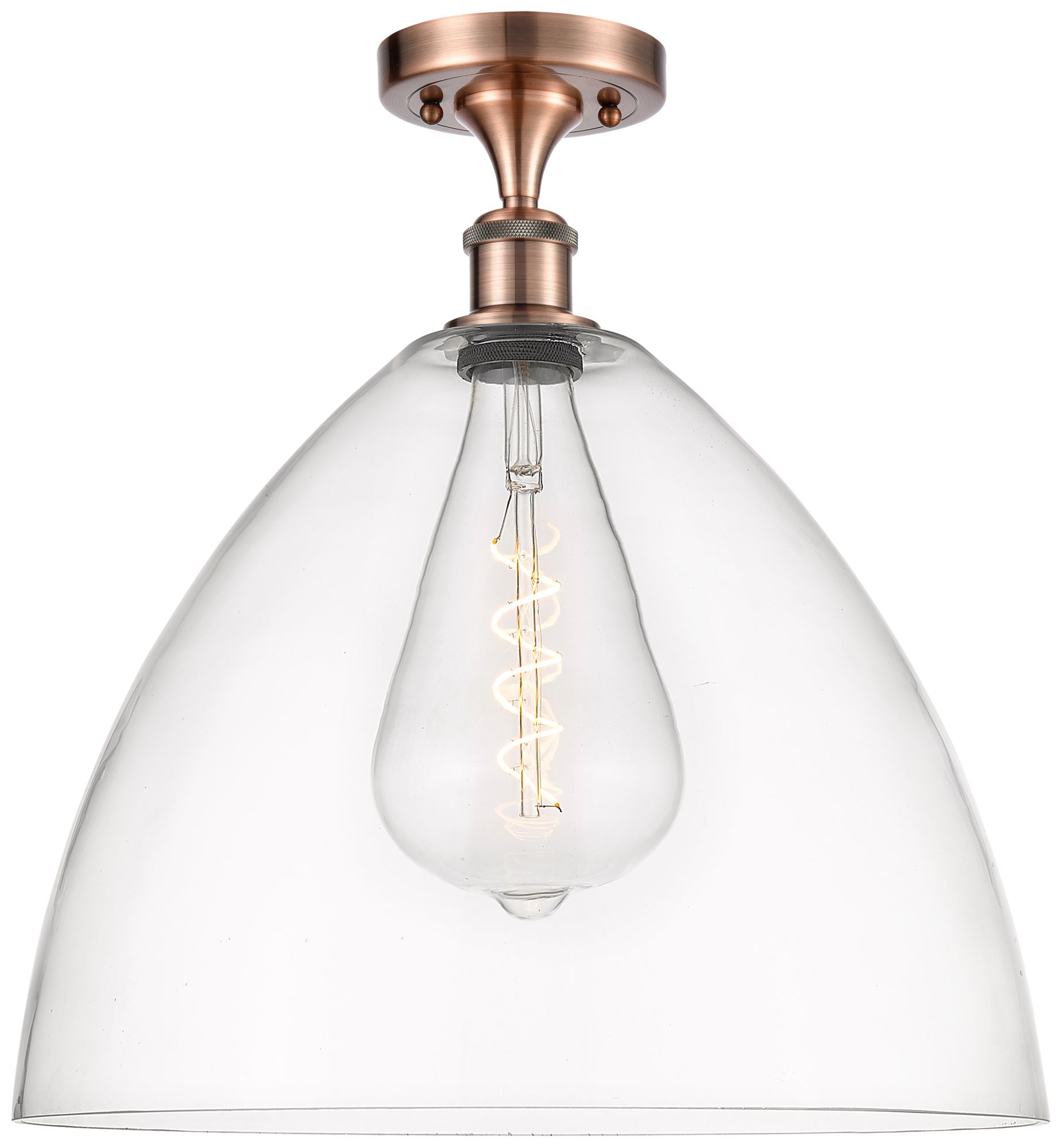 Bristol Glass 16" Semi-Flush Mount - Antique Copper - Clear Shade