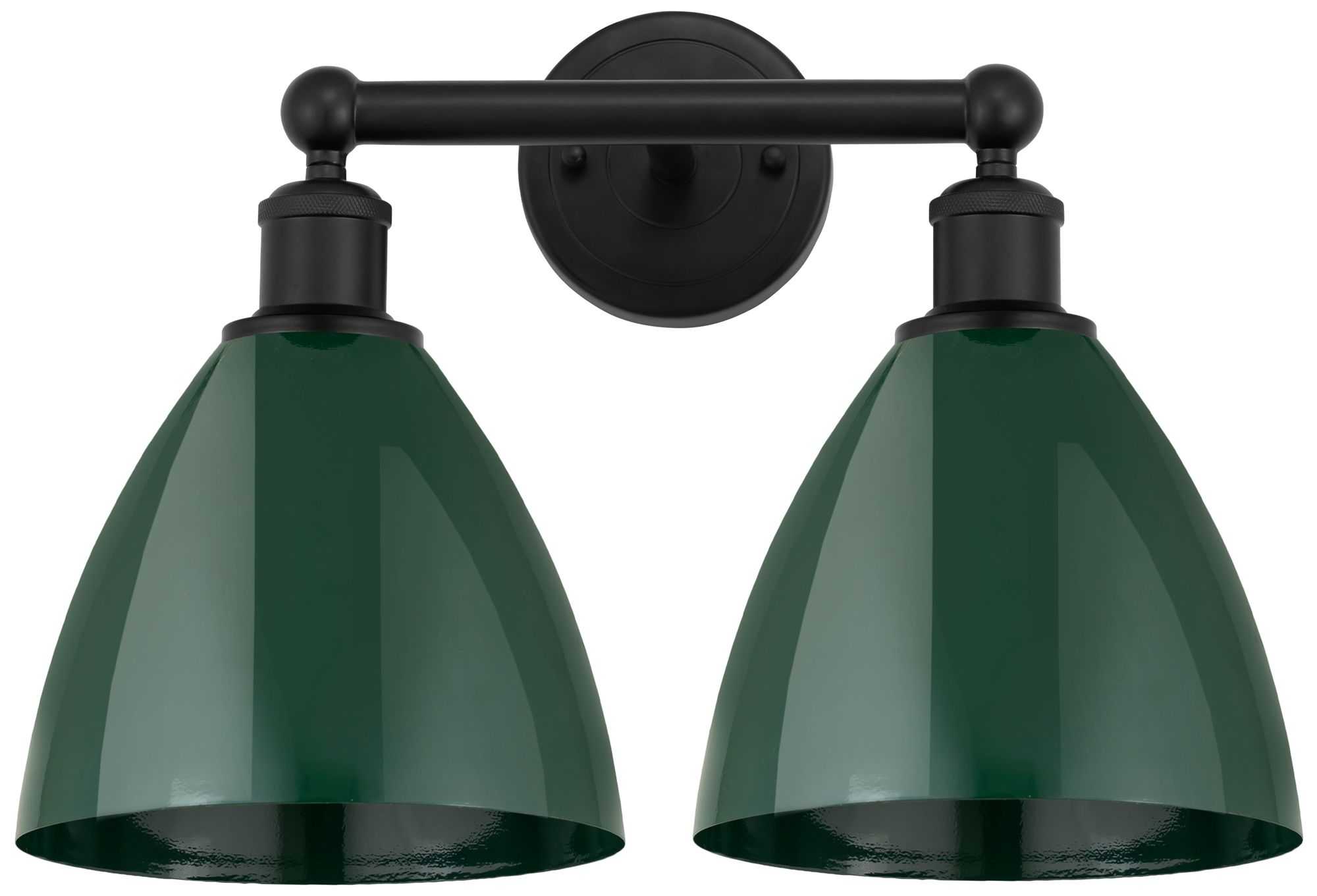 Plymouth Dome 17" 2-Light Matte Black Bath Light w/ Green Shade