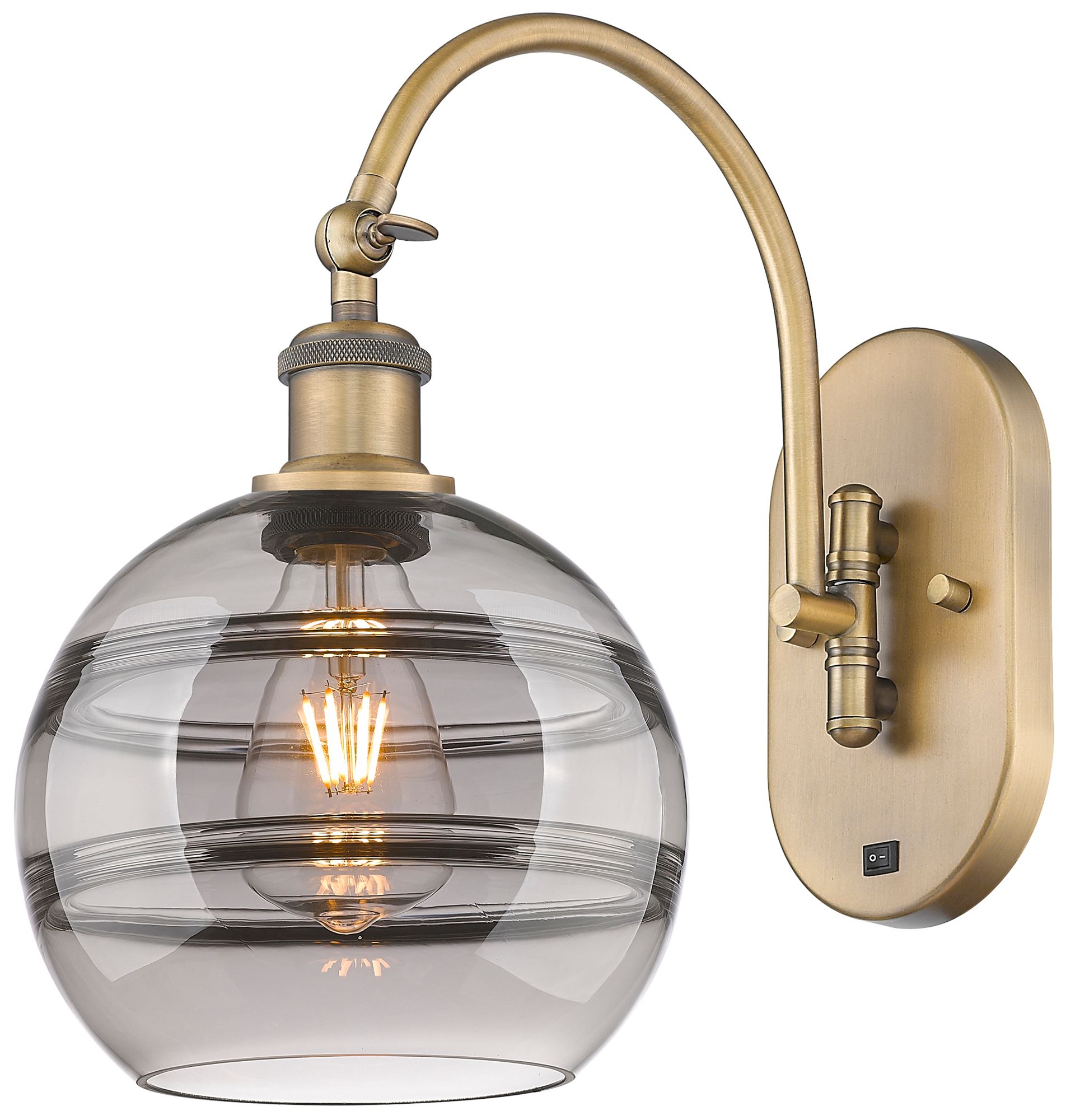 Ballston Rochester 13.38"H Brushed Brass Adjustable Sconce w/ Smoke Sh