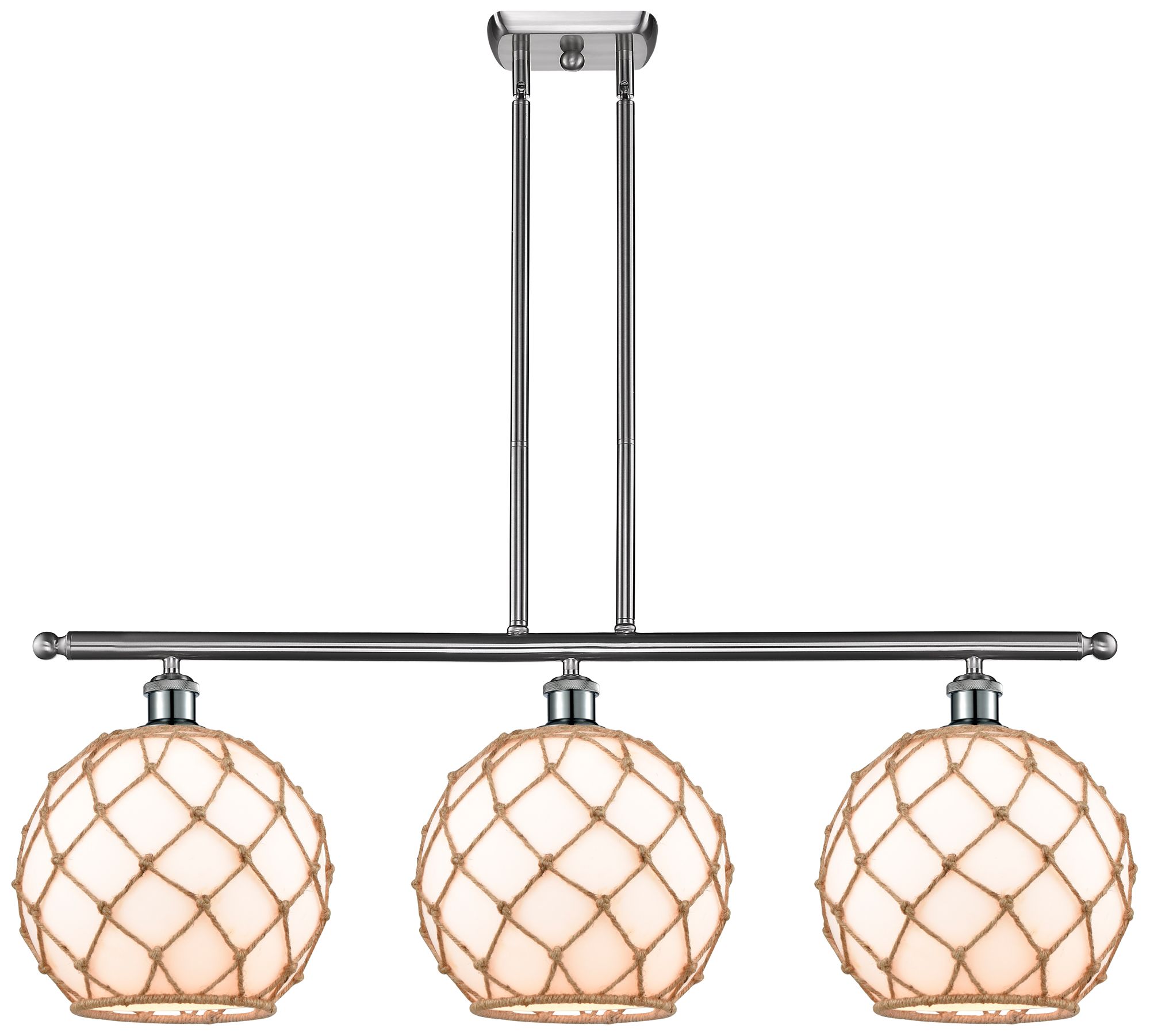 Farmhouse 36"W 3 Lt Satin Nickel Island Light w/ White & Brown Sha