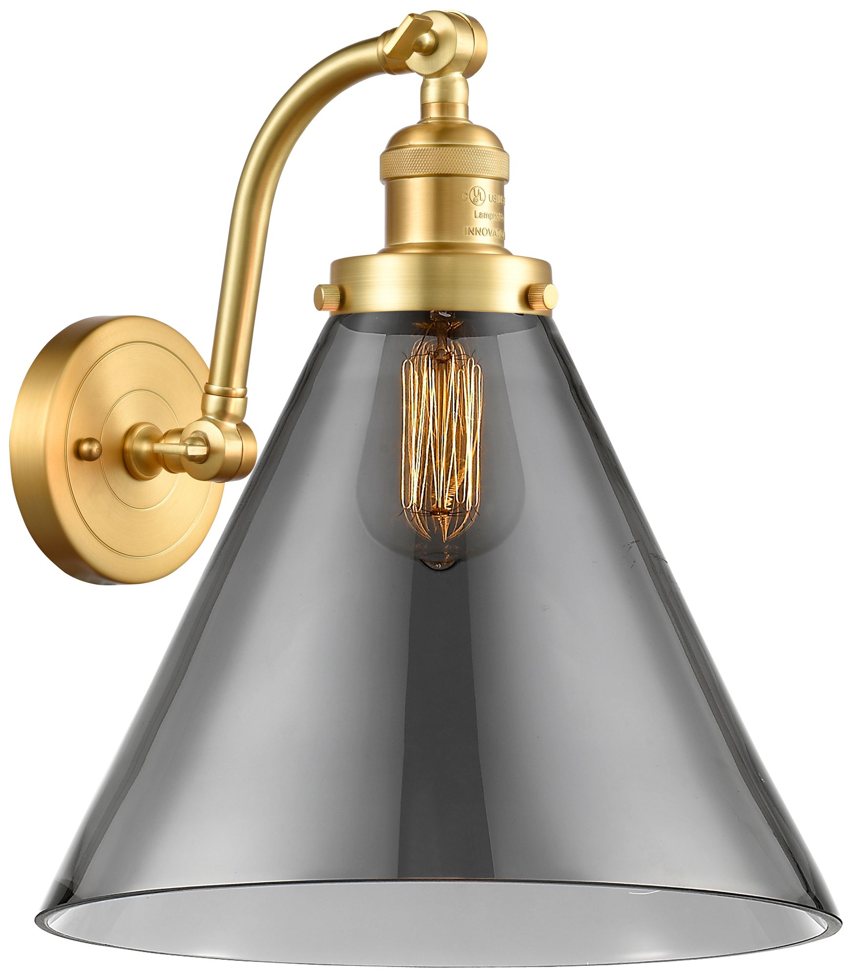 Cone 14" High Satin Gold Sconce w/ Plated Smoke Shade