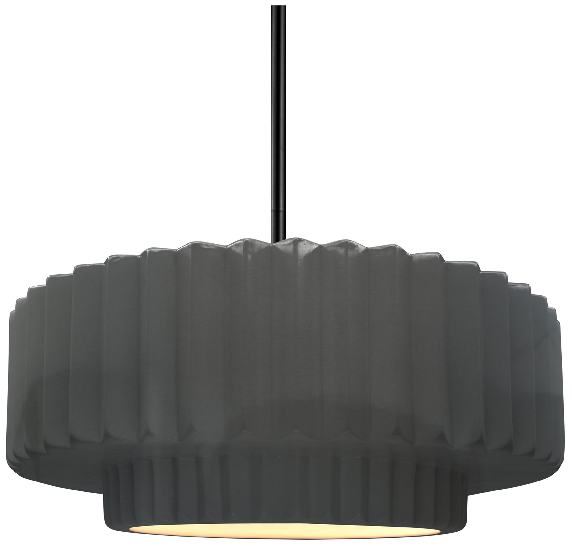 14.5"W Grey Frame Matte Black Tier Pleated Rigid Stem Kit LED Pendant