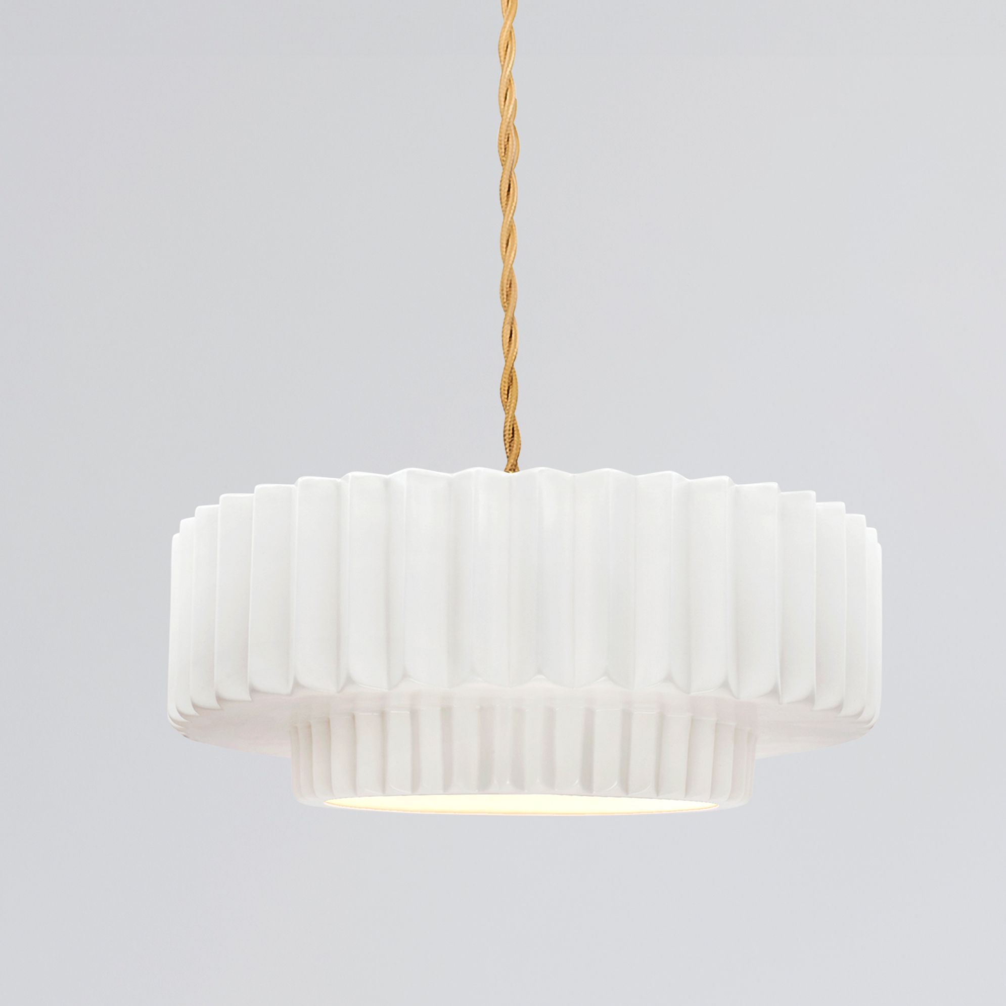 14.5"W Matte White Frame Brushed Brass Tier Pleated Twisted LED Pendan