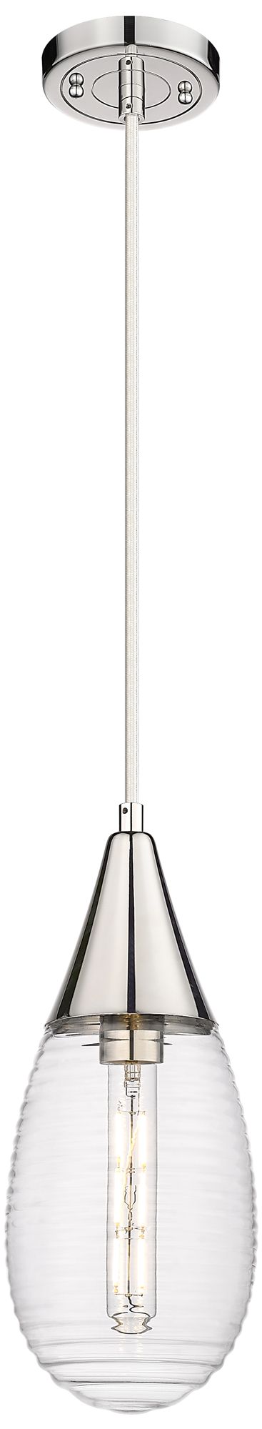 Malone 6" Wide Cord Hung Polished Nickel Pendant With Striped Clear Sh
