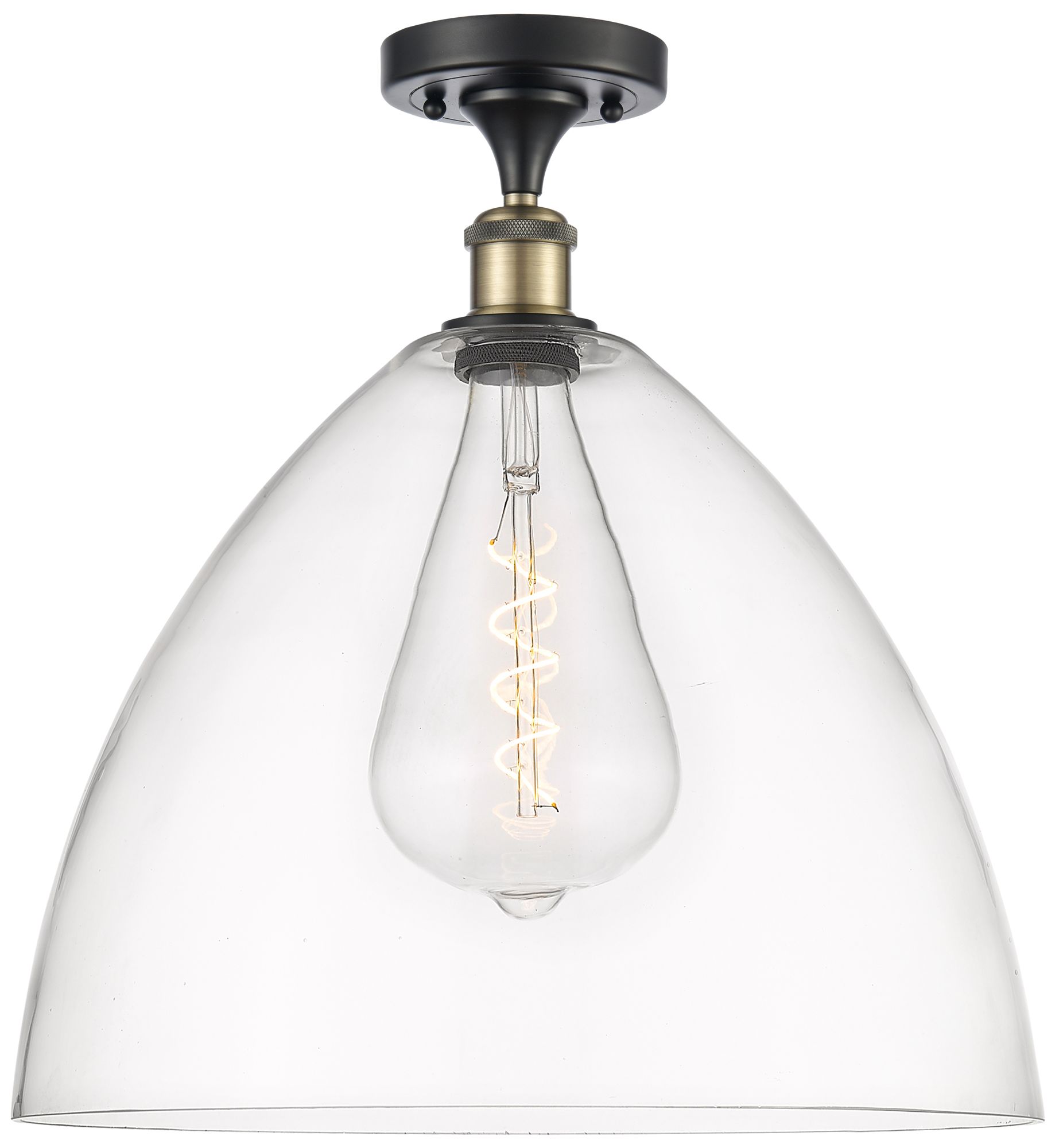 Bristol Glass 16" Semi-Flush Mount - Black Antique Brass - Clear Shad