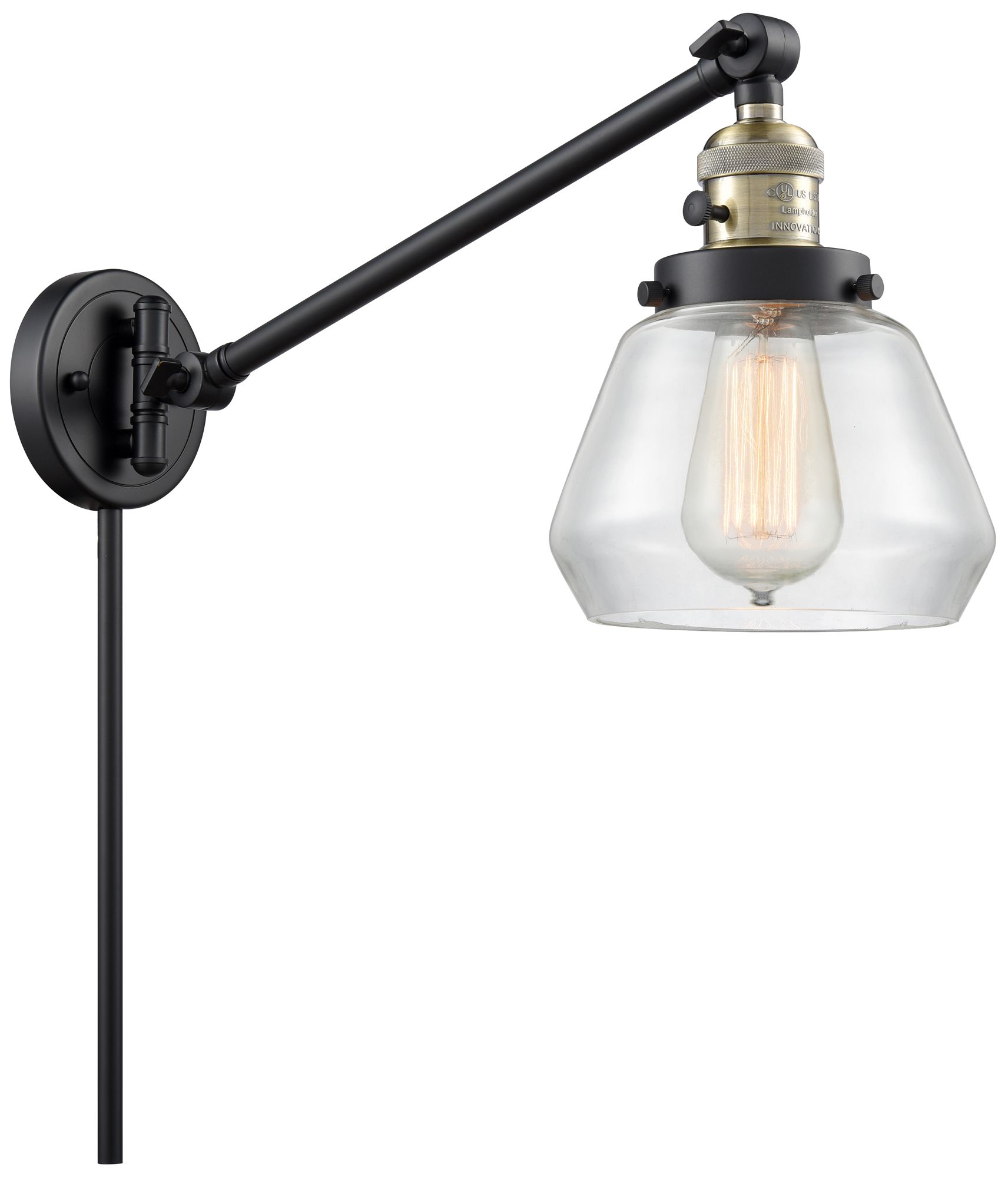 Fulton 8" Black Antique Brass Swing Arm w/ Clear Shade