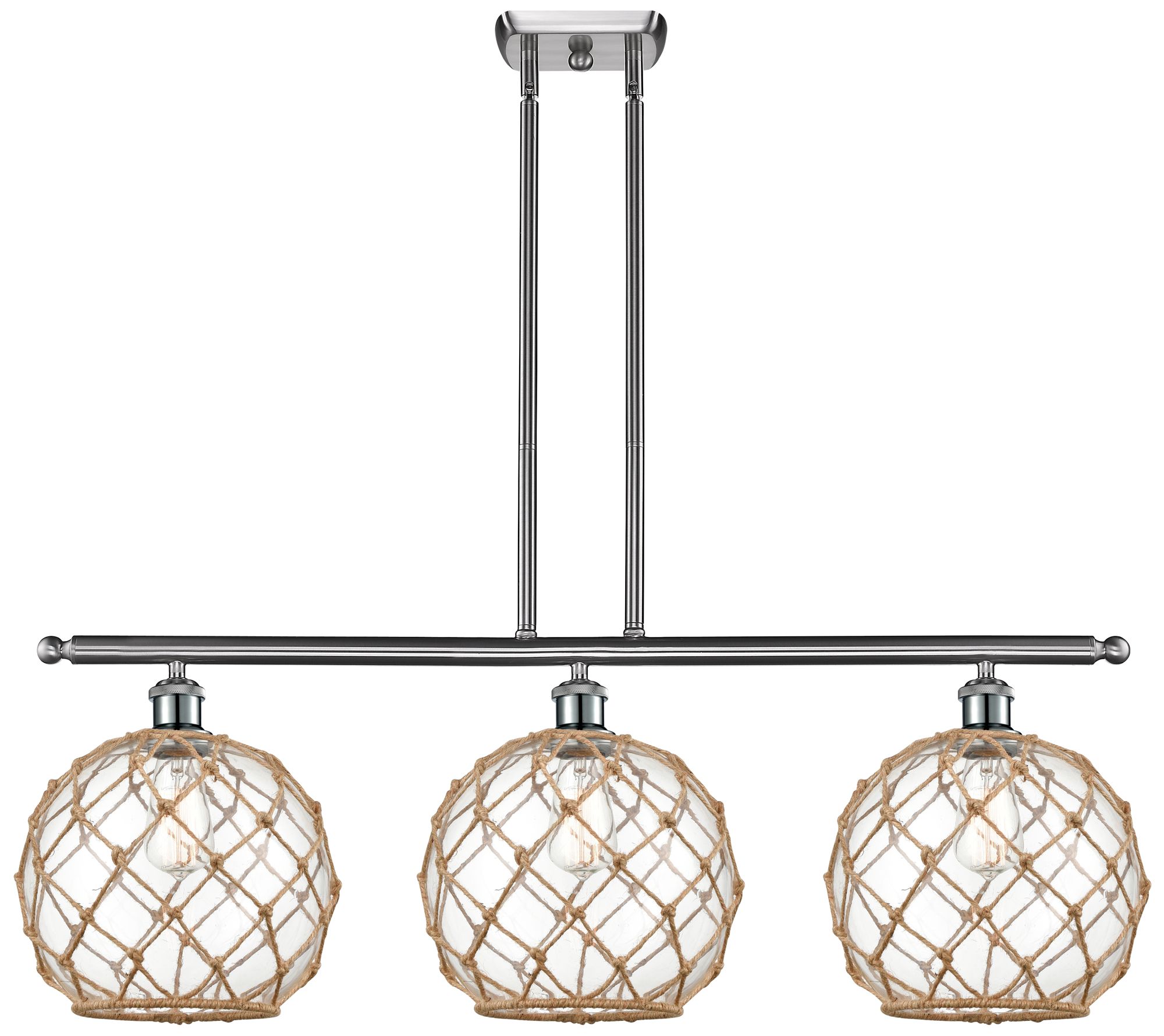 Large Farmhouse 36"W 3 Lt Satin Nickel Island Light w/ Clear & Bro