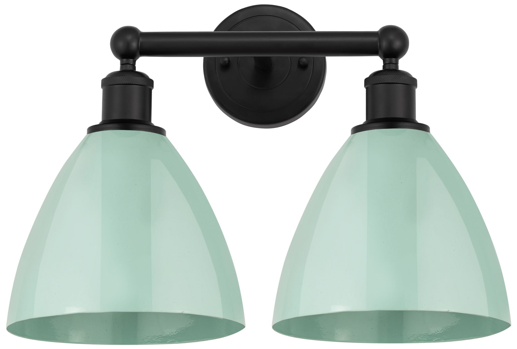 Plymouth Dome 17" 2-Light Matte Black Bath Light w/ Seafoam Shade
