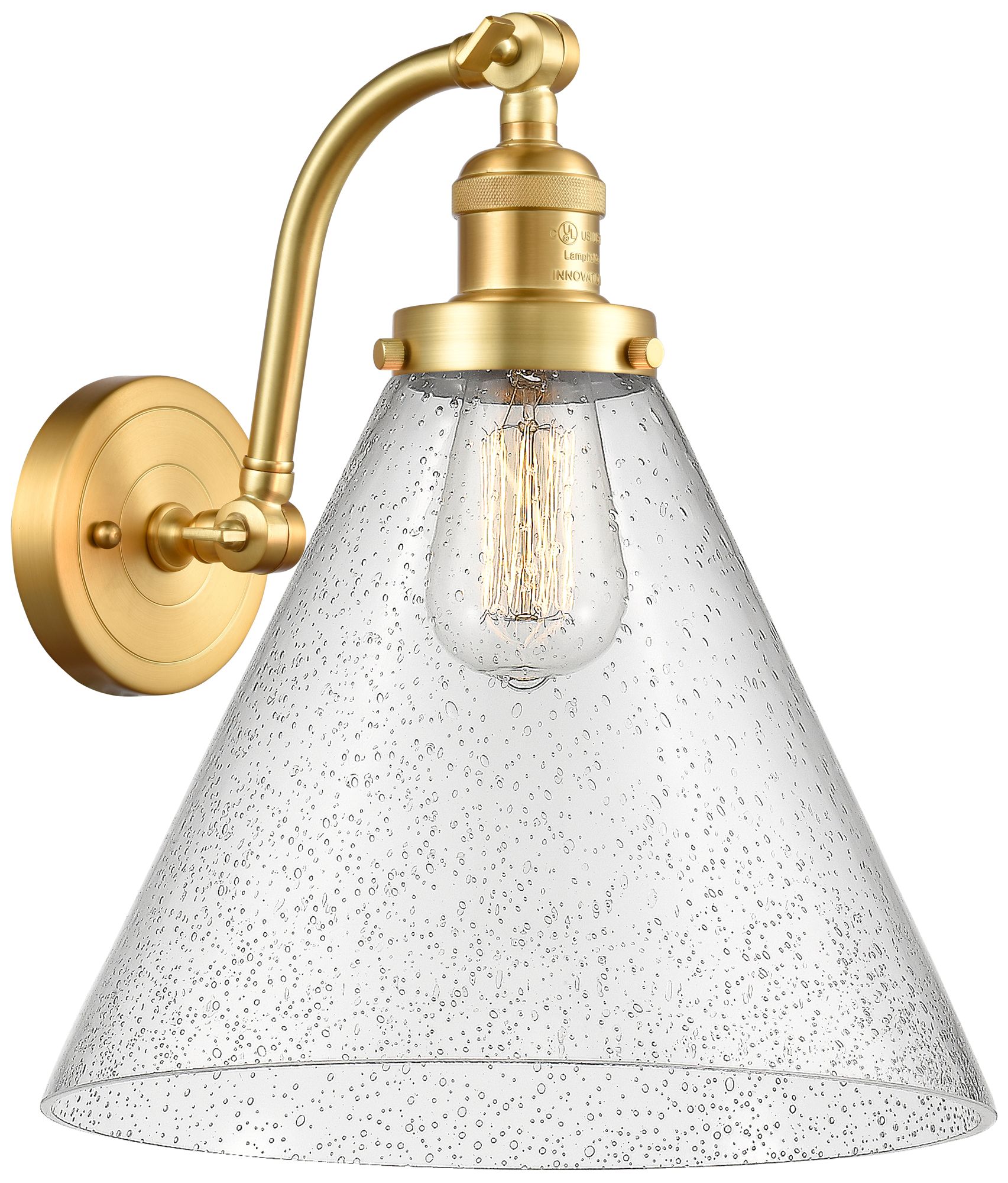 Cone 14" High Satin Gold Sconce w/ Seedy Shade