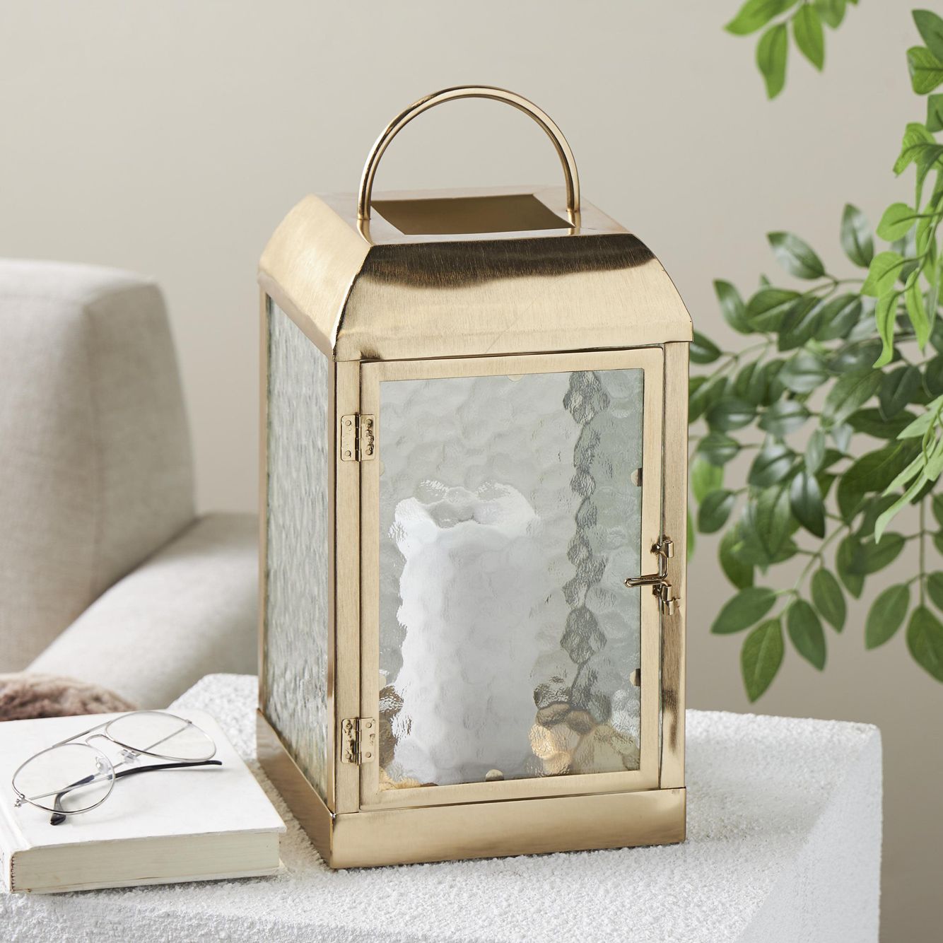 Gold Metal Industrial Candle Lantern, 8" x 8" x 16"