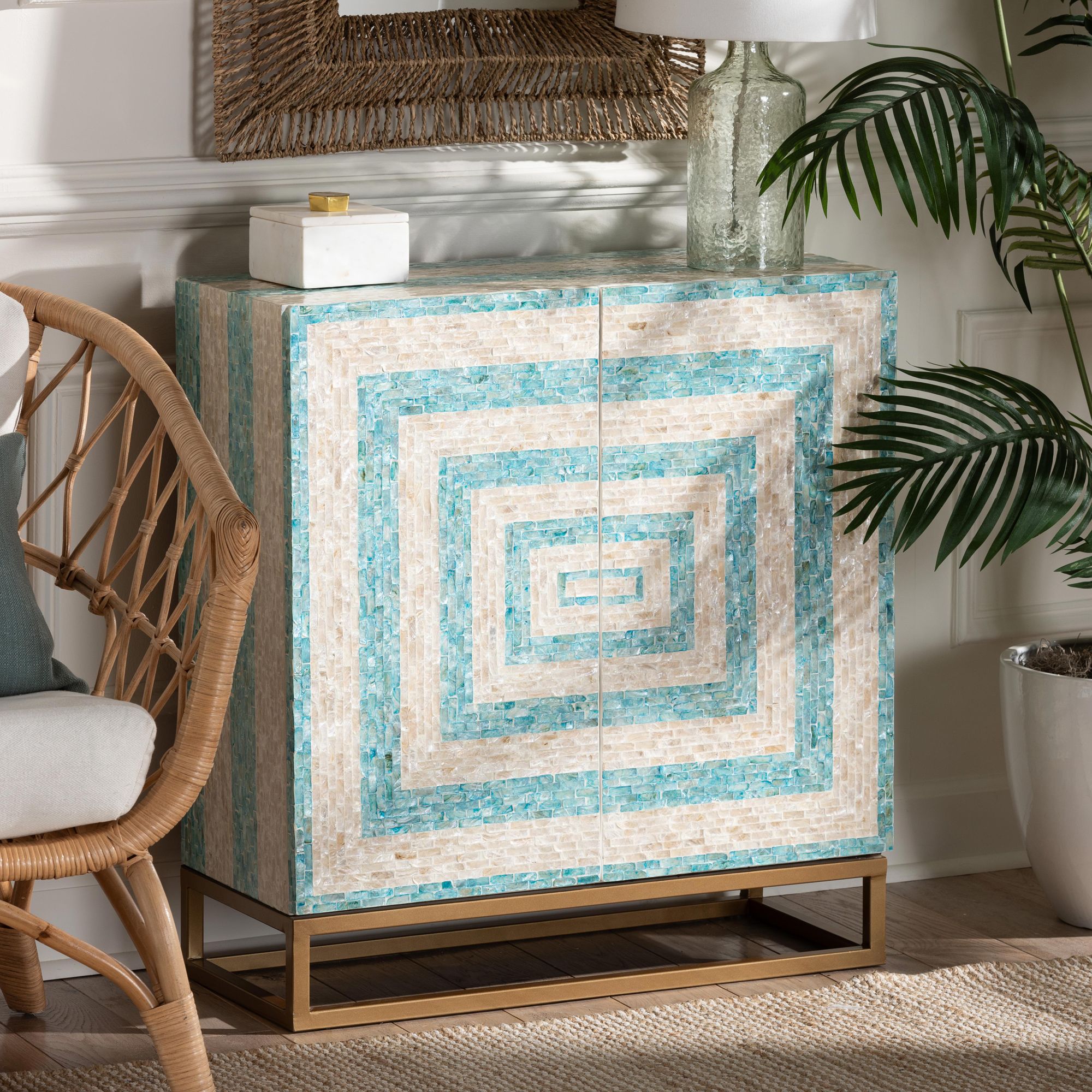 Utari 27 1/2" Wide Beige and Blue 2-Door Storage Cabinet