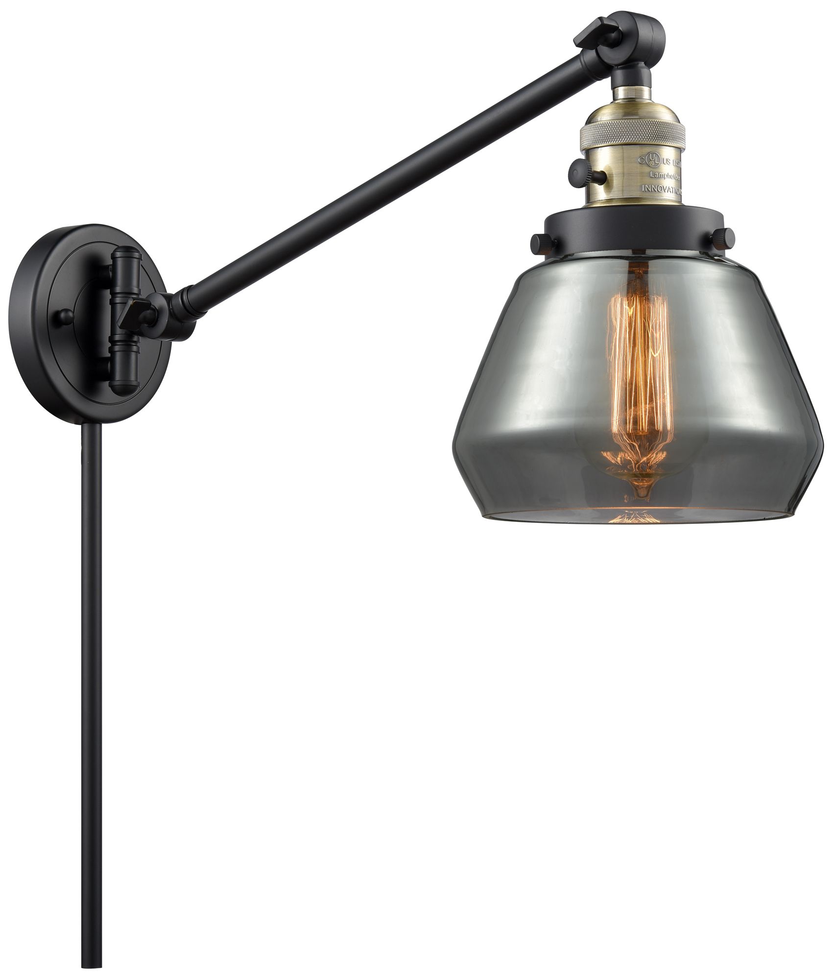 Fulton 8" Black Antique Brass Swing Arm w/ Plated Smoke Shade