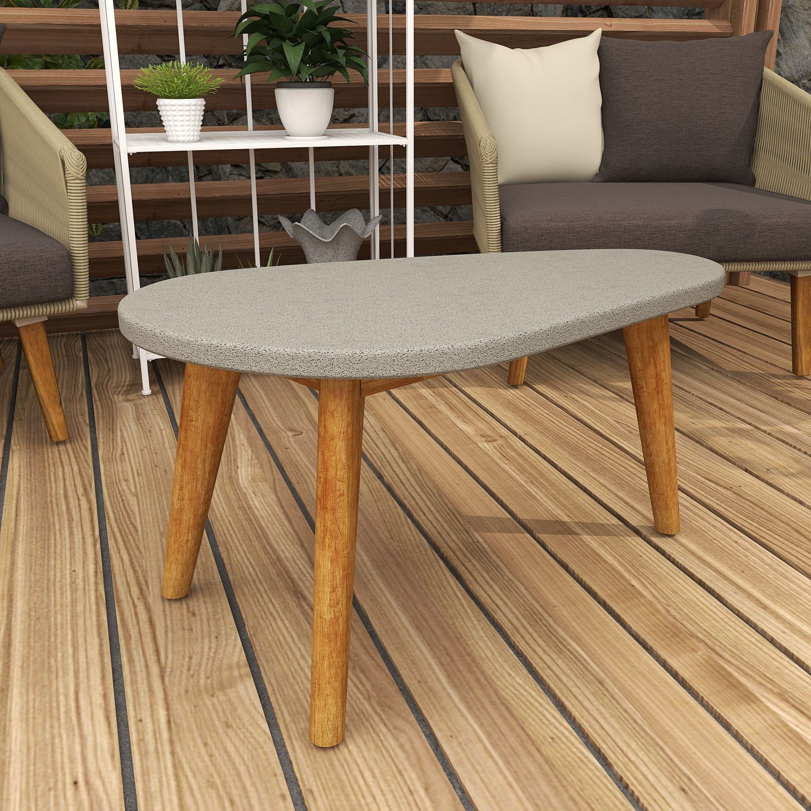 Nogu 29" Wide Gray Cement Brown Wood Outdoor Accent Table