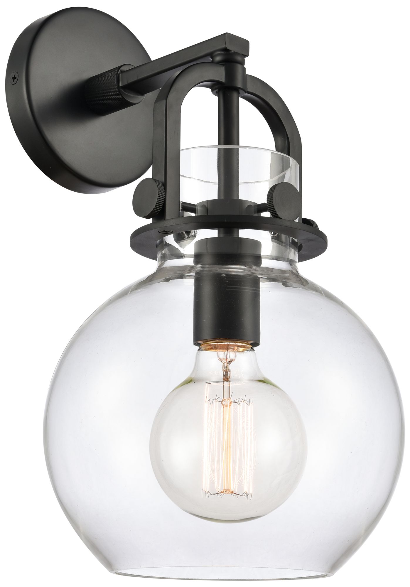 Newton Sphere 14" High Matte Black Sconce With Clear Shade