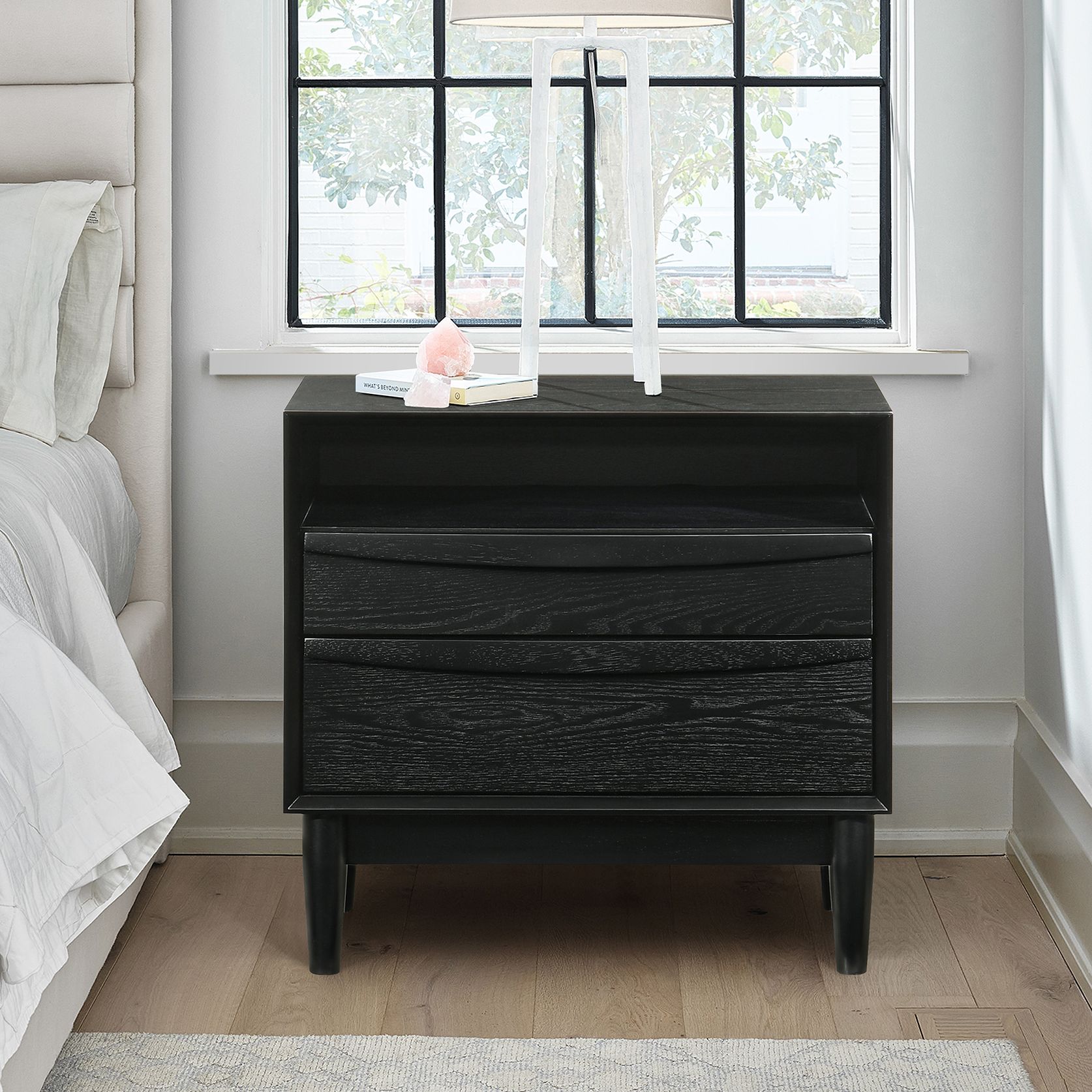 Artemio 23" Wide Black Wood 2-Drawer Nightstand