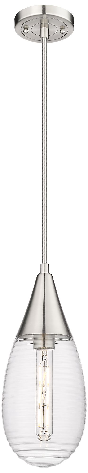 Malone 6" Wide Cord Hung Satin Nickel Pendant With Striped Clear Shade