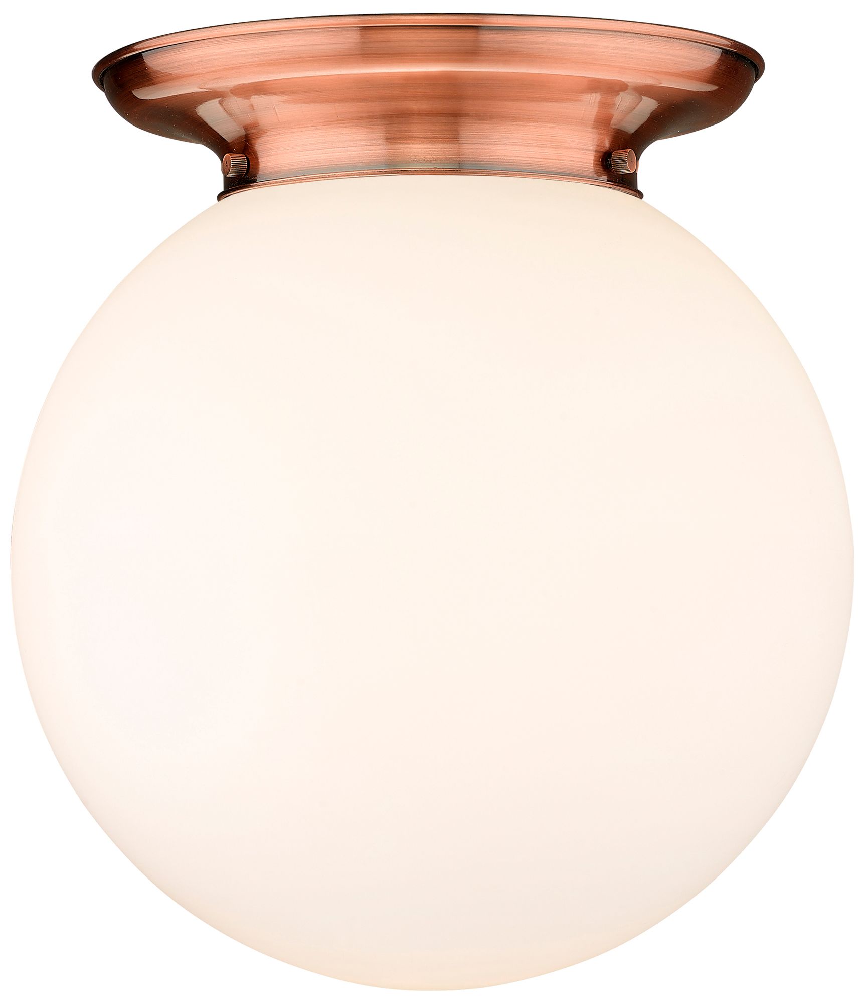 Beacon 14" Wide Antique Copper Flush Mount With Matte White Glass Shad