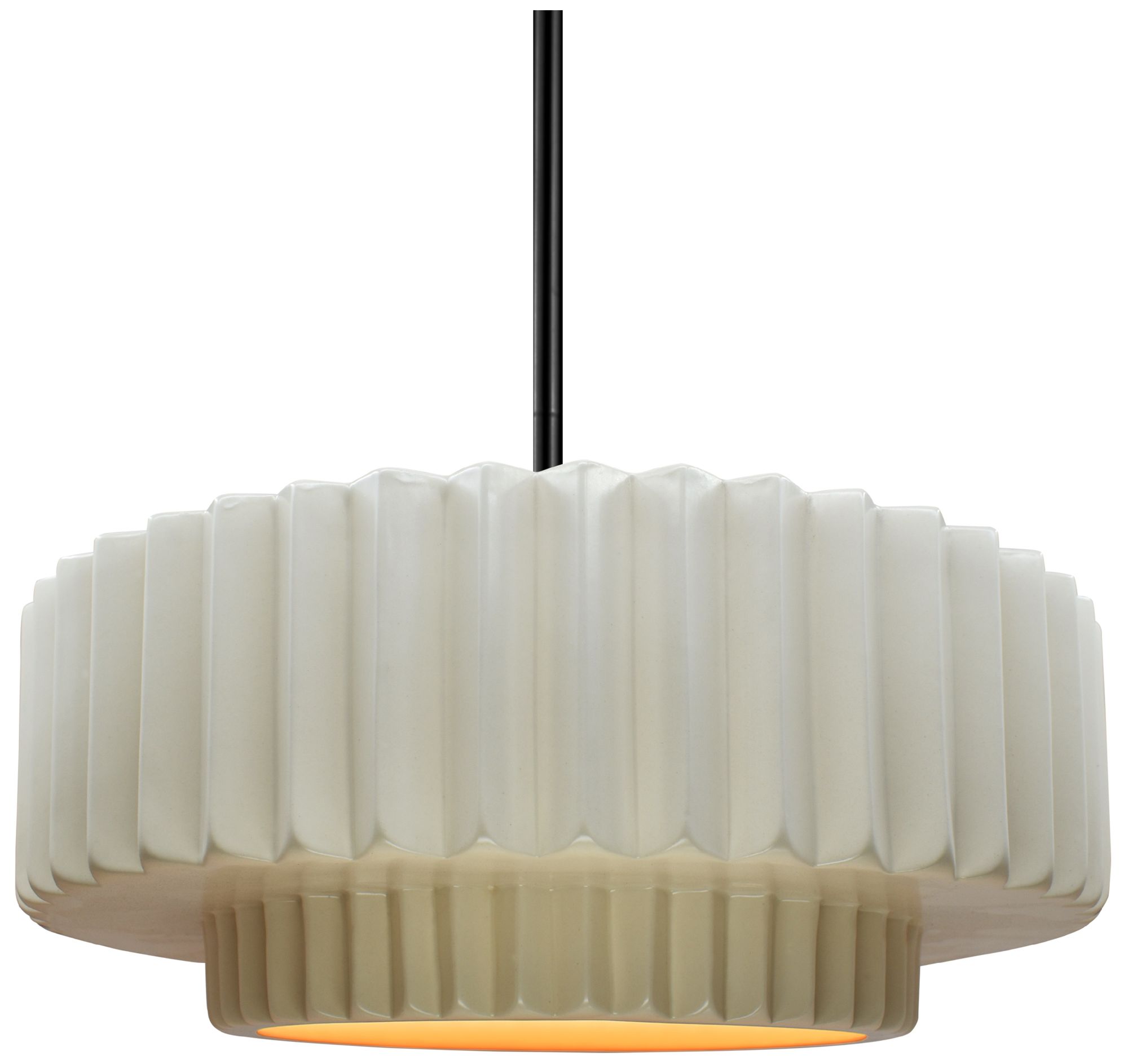 14.5"W Matte White/Gold Frame Matte Black Tier Pleated Stem LED Pendan
