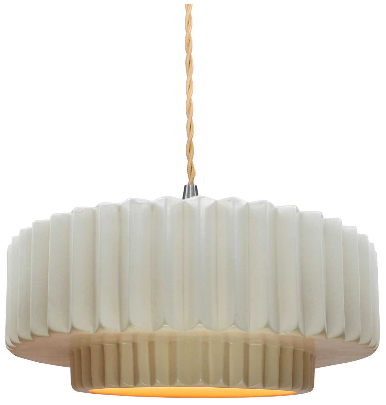 14.5"W Matte White/Gold Frame Nickel Tier Pleated Beige Twisted LED Pe