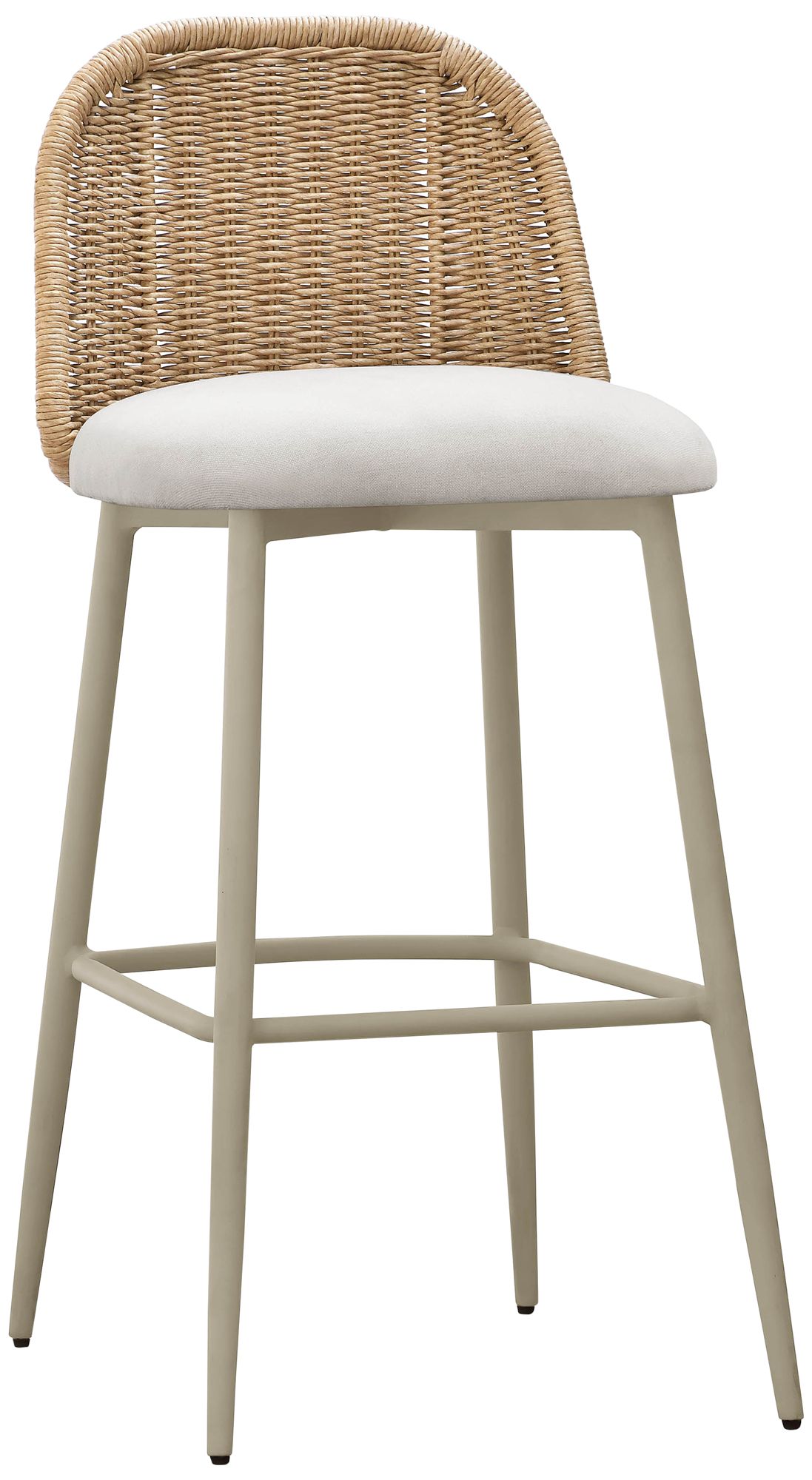 Alexa 30" Cream Metal and Wicker Outdoor Bar Stool
