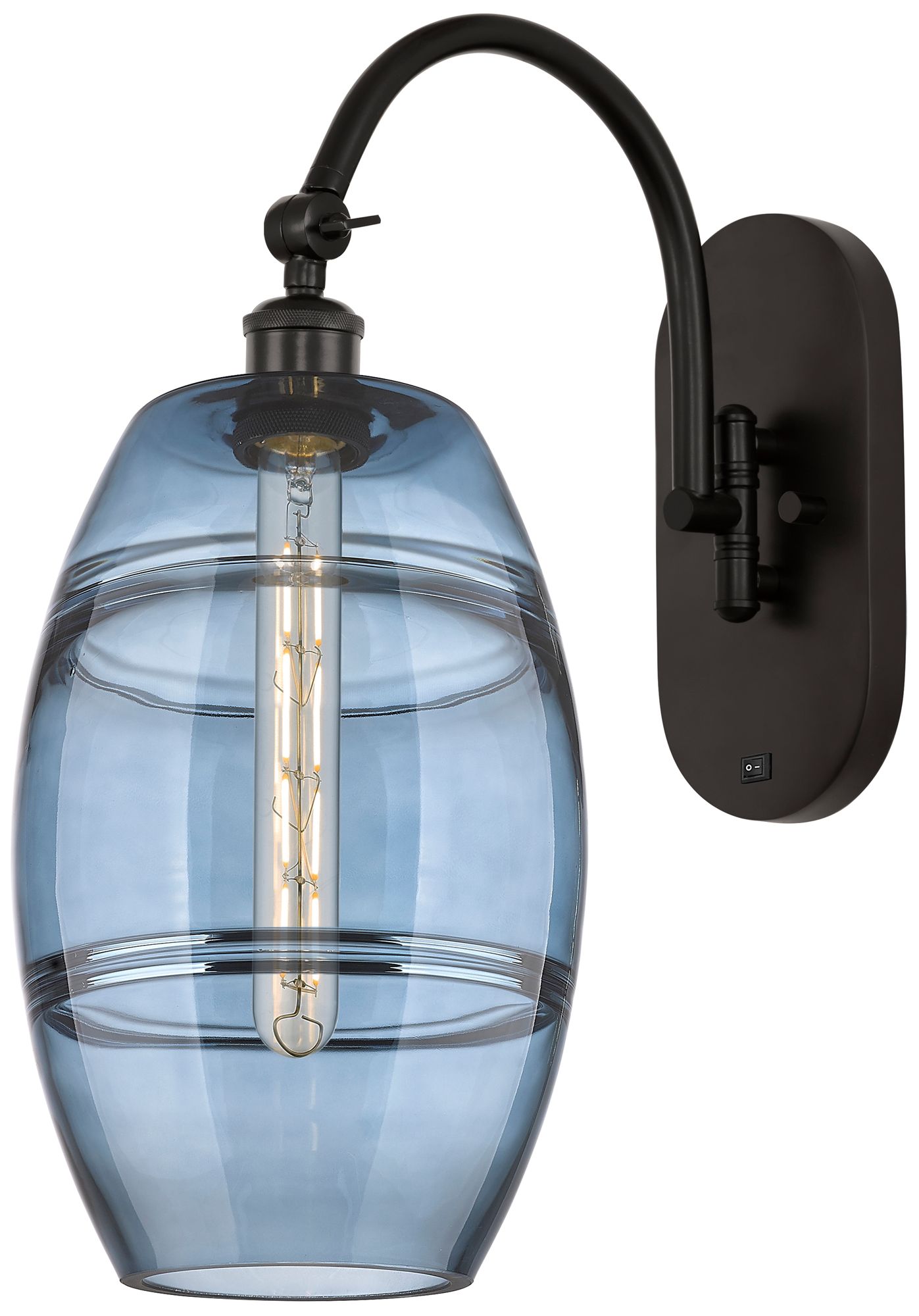 Ballston Vaz 13.38"H Oiled Bronze Adjustable Sconce w/ Blue Shade
