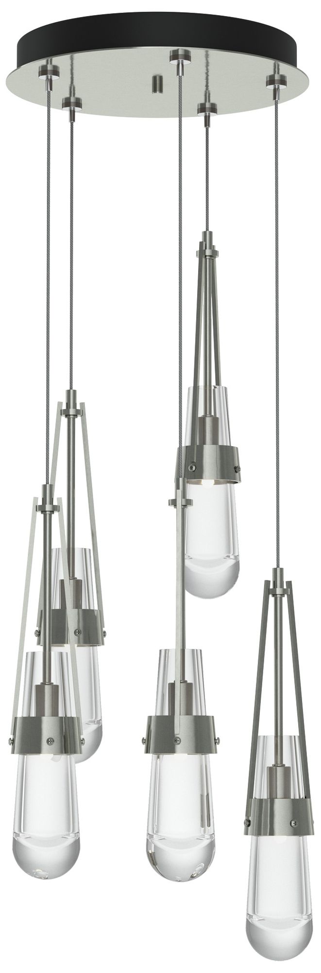 Link 13" Wide 5-Light Sterling Long Pendant With Clear Glass Shade