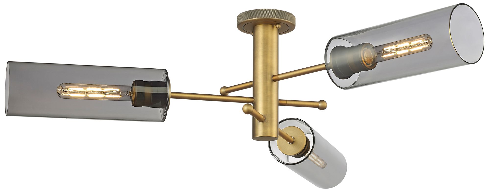 Crown Point 39.25"W 3 Light Brushed Brass Flush Mount w/ Plated Smoke