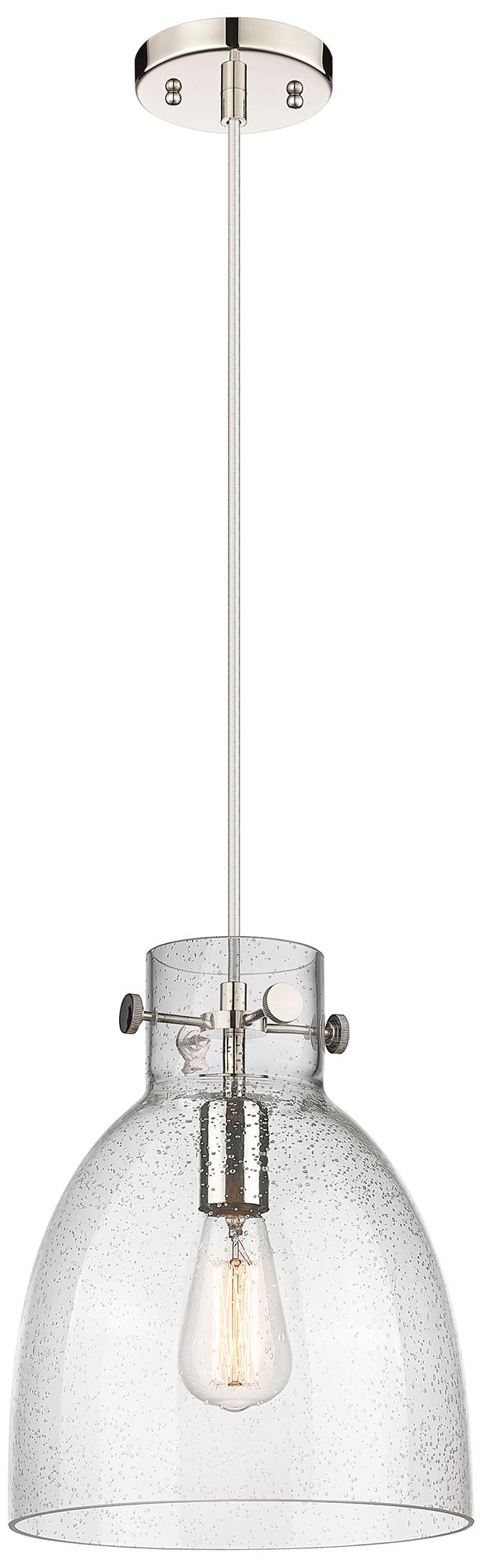 Newton Bell 10" Wide Polished Nickel Cord Hung Pendant With Seedy Shad