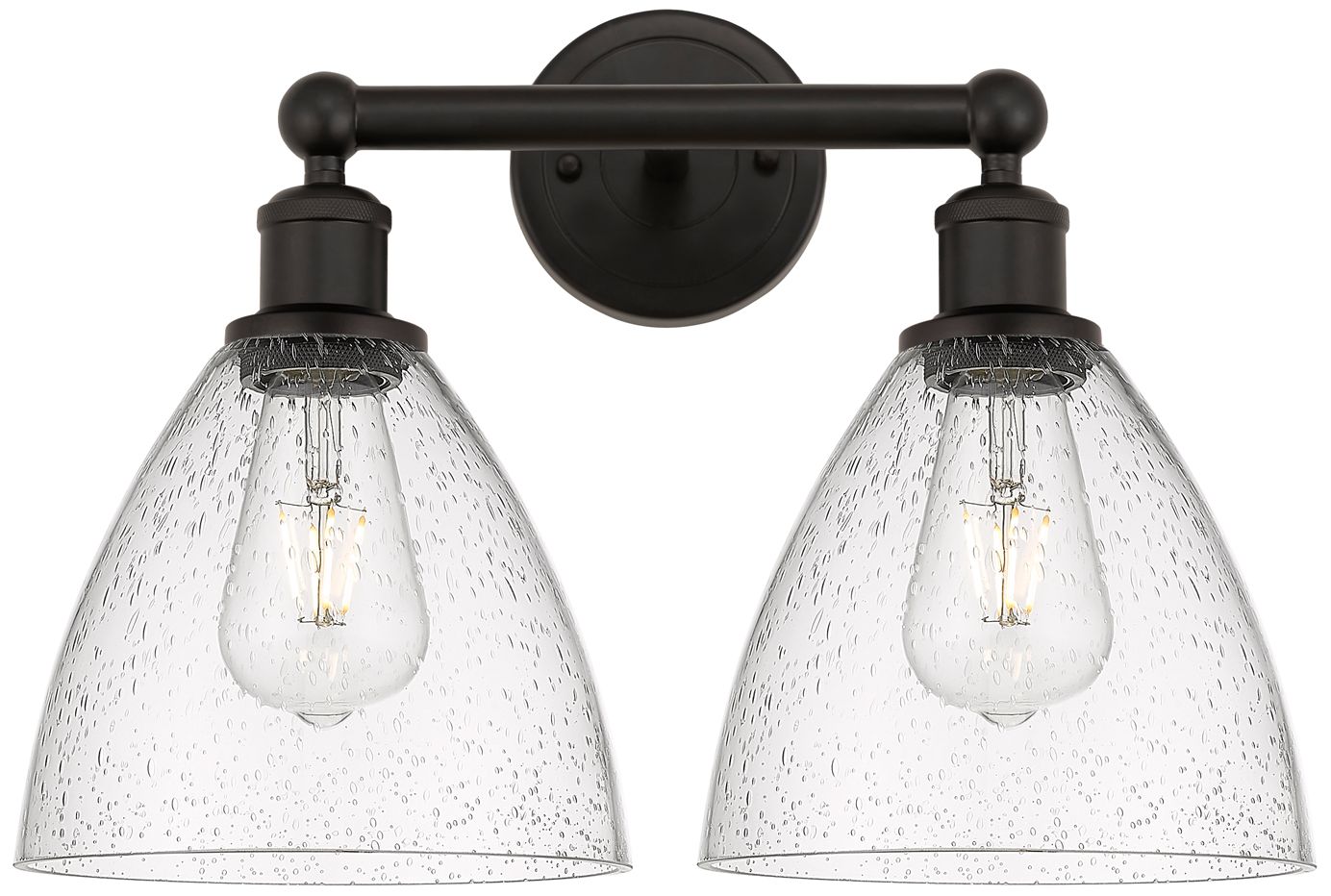 Bristol Glass 17" 2-Light Oil Rubbed Bronze Bath Light w/ Seedy Shade