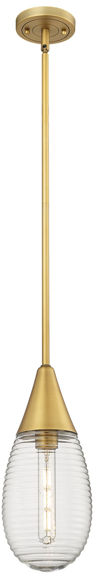 Malone 6" Wide Stem Hung Brushed Brass Pendant With Striped Clear Shad