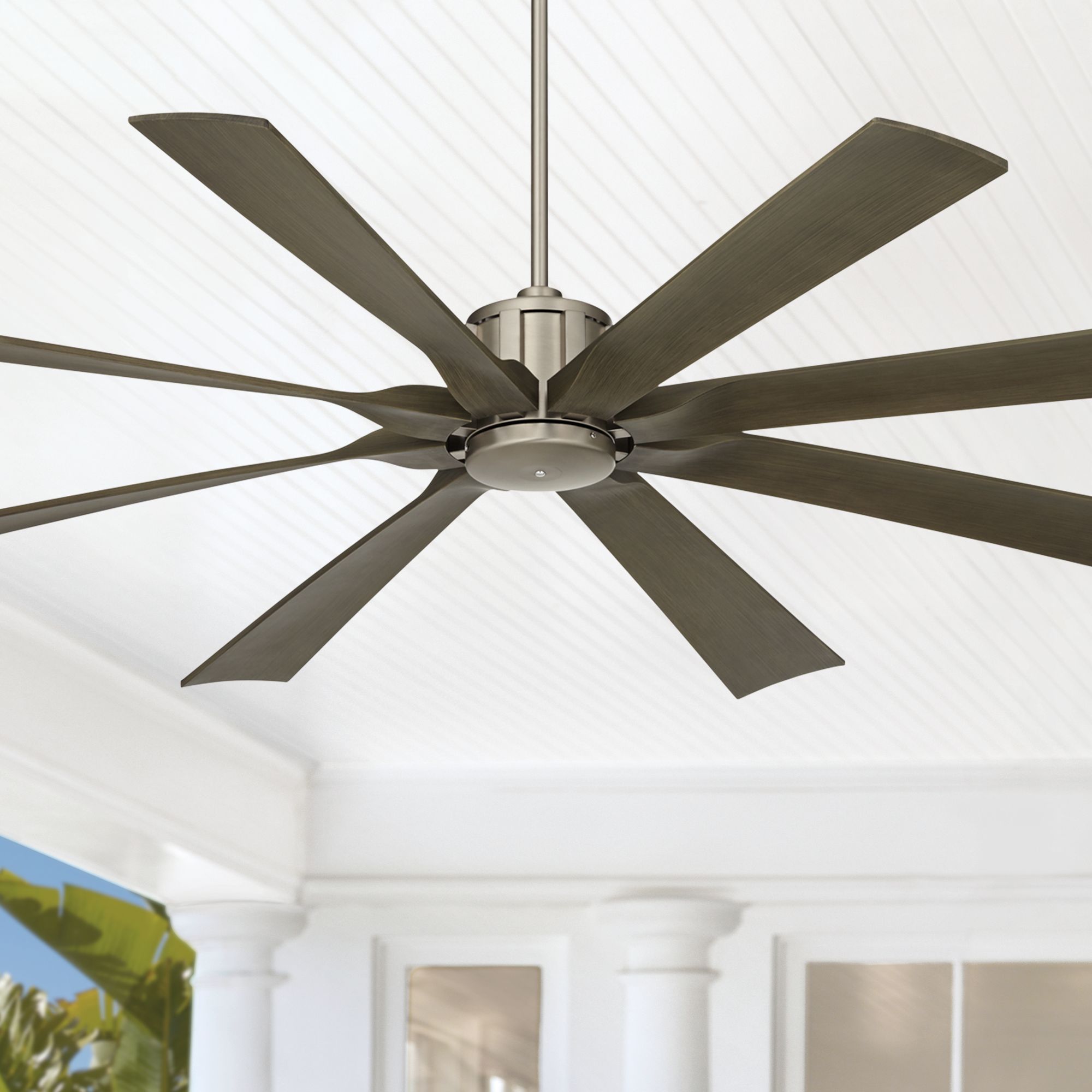 70" Possini Euro Defender Nickel and Oak Large Ceiling Fan with Remote
