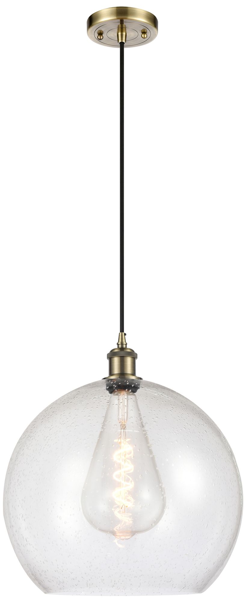 Ballston Athens 14" Antique Brass LED Pendant With Seedy Shade