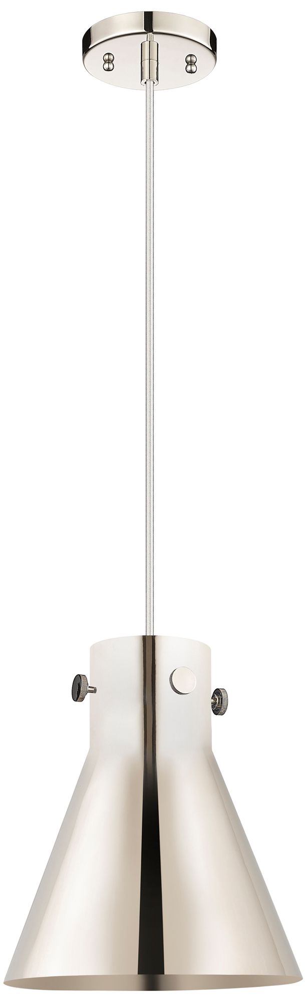 Newton Metal Cone 10"W Polished Nickel Corded Pendant w/ Nickel Shade