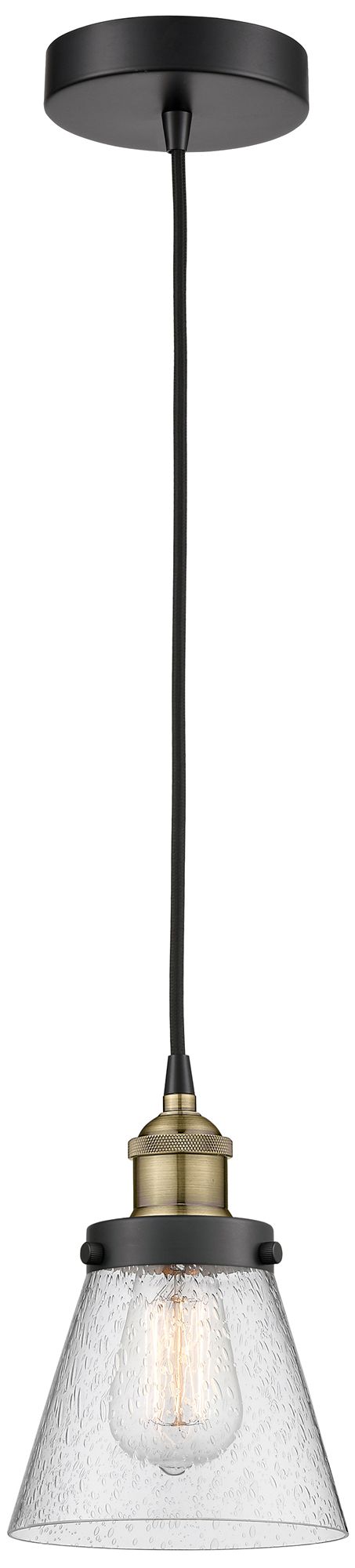 Cone 6.25" Wide Black Brass Corded Mini Pendant With Seedy Shade