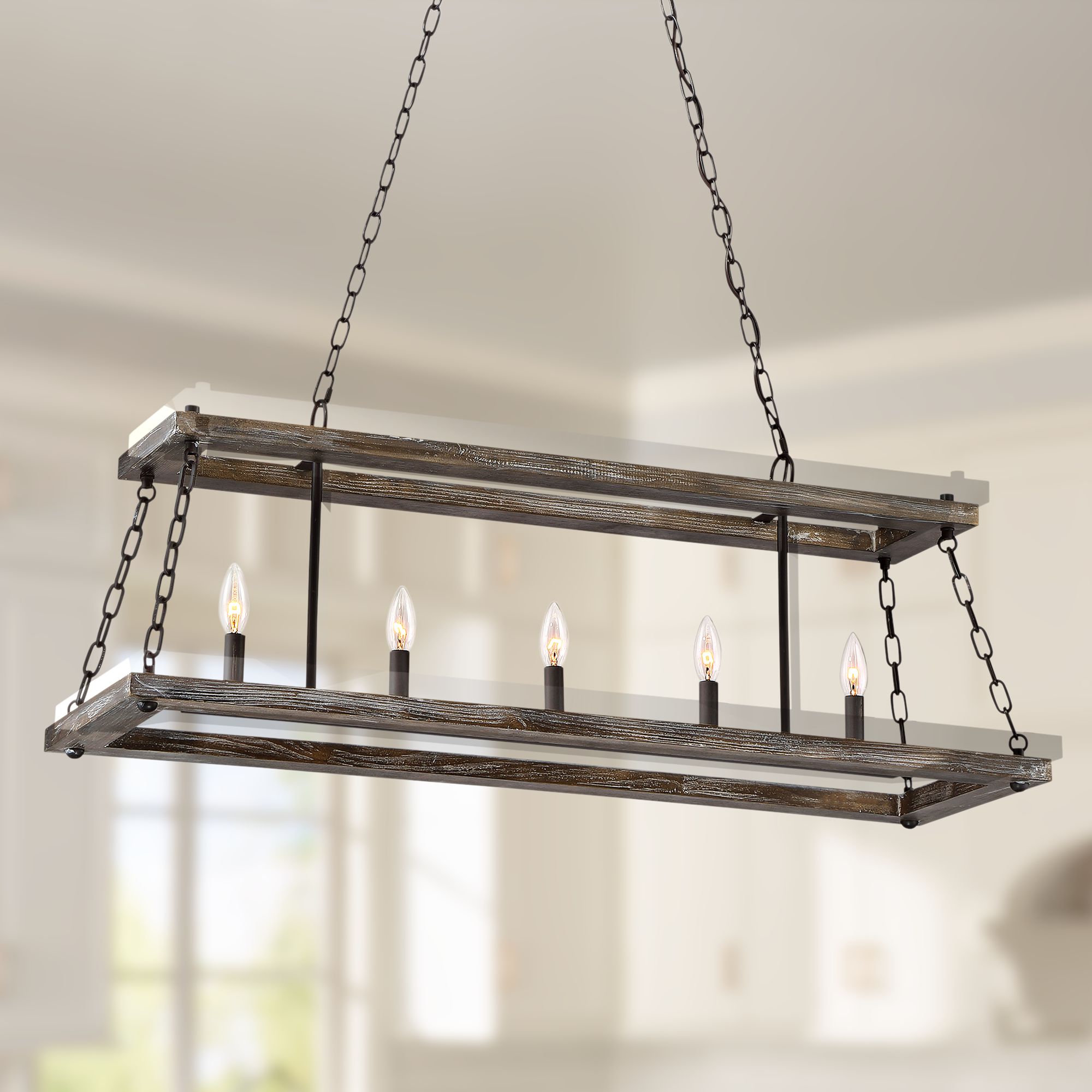 Dwelling 40"W Bronze Wood Kitchen Island Light Chandelier