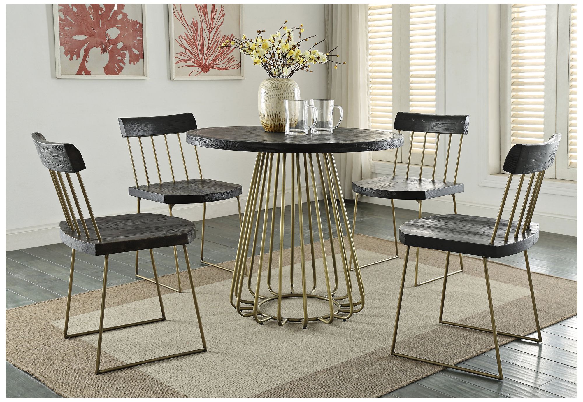 Madrid 35 1/2" Wide Black Pine 5-Piece Modern Dining Set