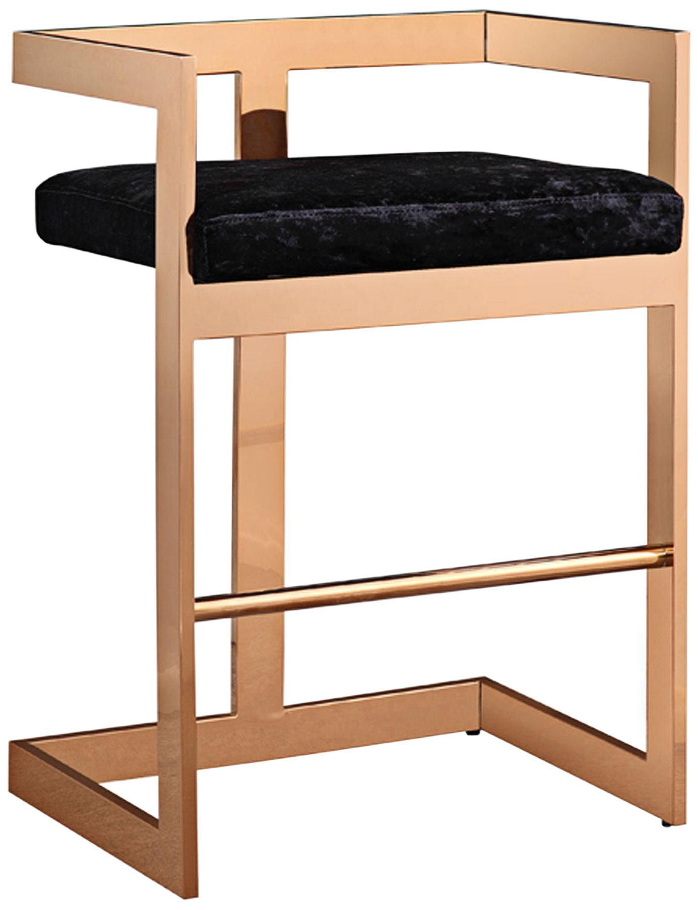 Marquee 26" Black Velvet and Rose Gold Counter Stool
