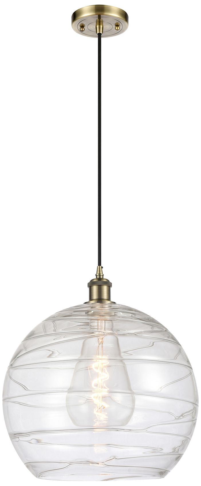 Ballston Athens 14" Antique Brass Pendant With Clear Deco Swirl Shade